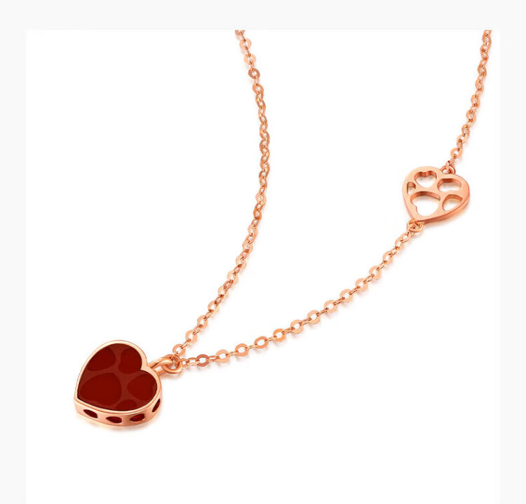 Xie Ruilin (TSL) Little Heart Series 18K Gold Necklace Love Red Agate Rose Gold Clavicle Chain Women's Birthday 63911