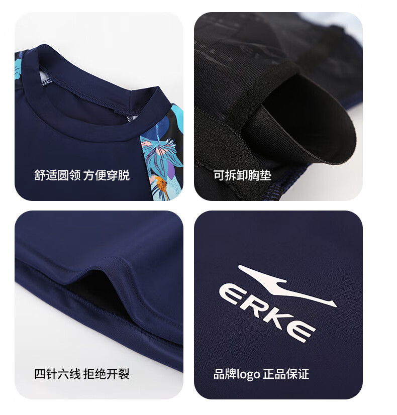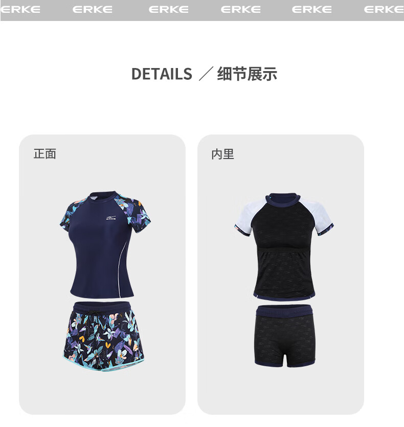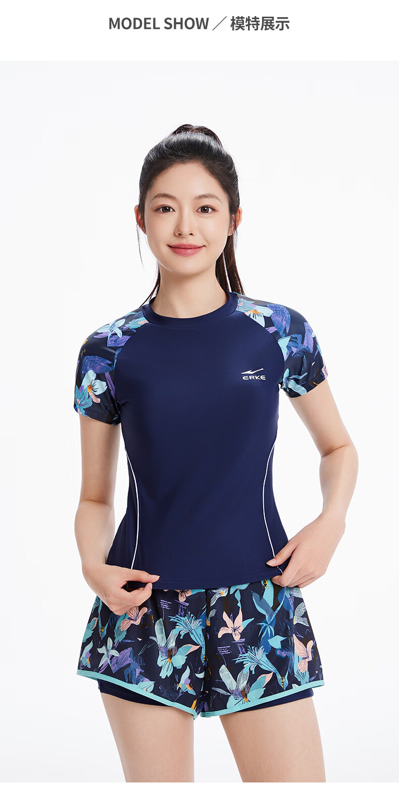 Hongxing Erke (ERKE) swimsuit for women, split large size suit, swimming and diving equipment, covering the flesh and slimming, soaking in hot springs, flower blue 2XL