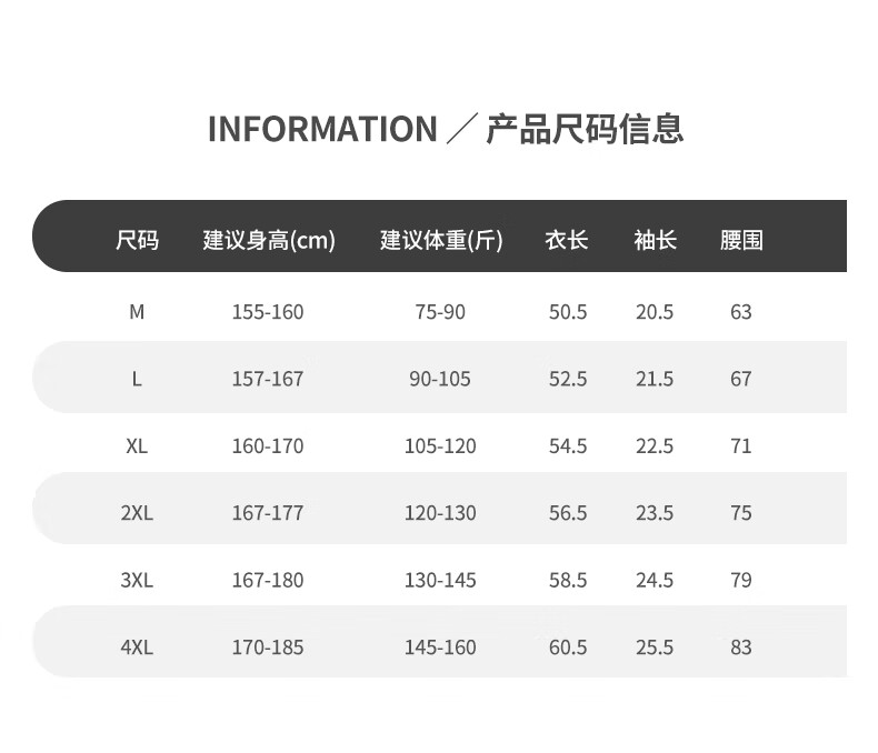 China (cm) 160-165/84-86 165-170 / 88-90 167-172 / 92-96 168-173 / 98-102 170-176 / 106-110