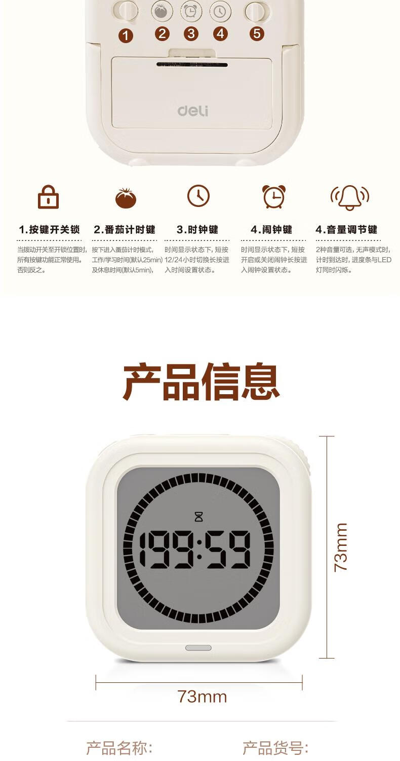 Deli student electronic timer, self-discipline timer for children and students, question time manager, kitchen baking timer, LE205 New Year gift