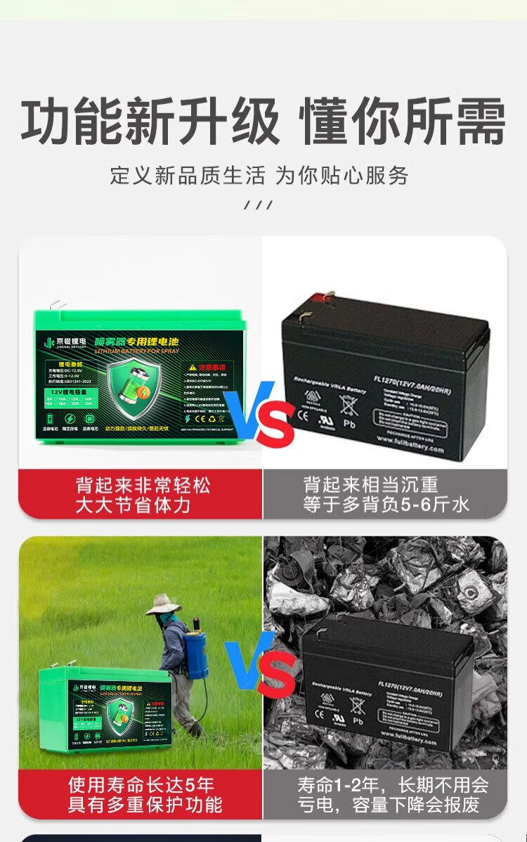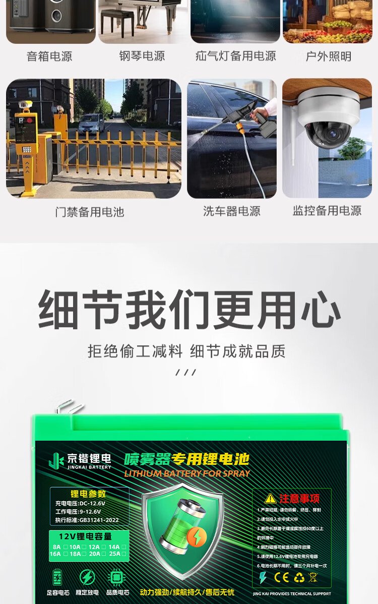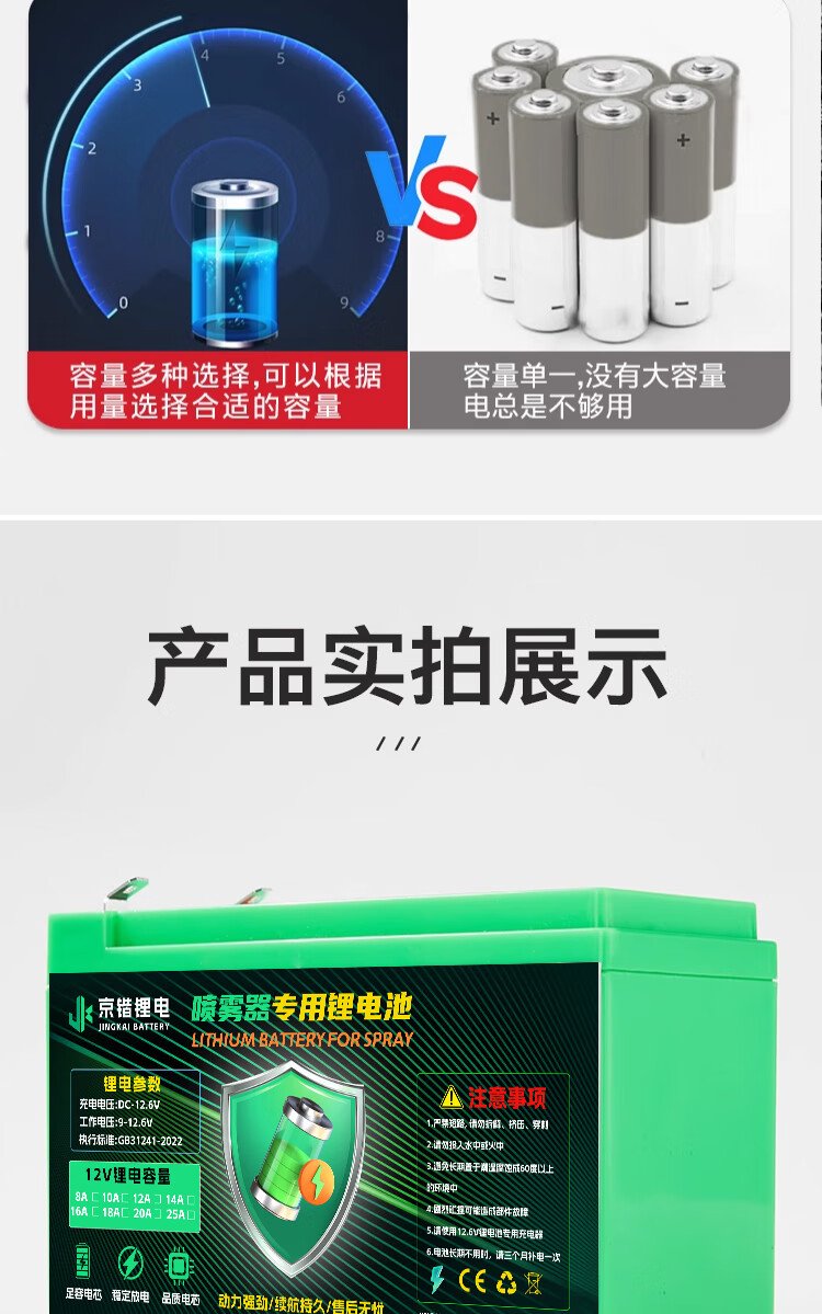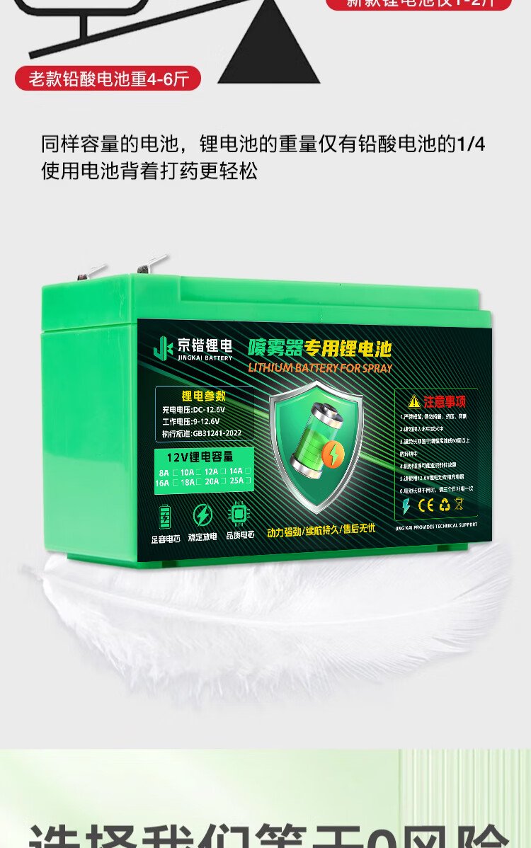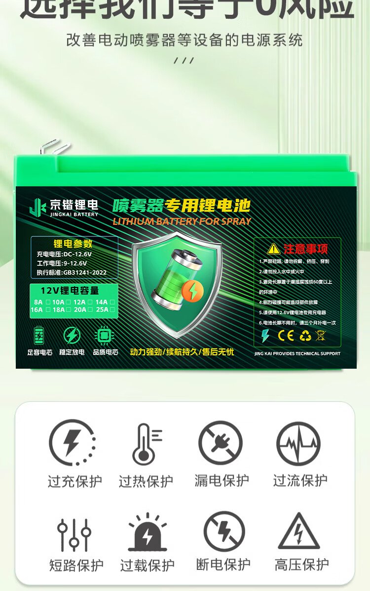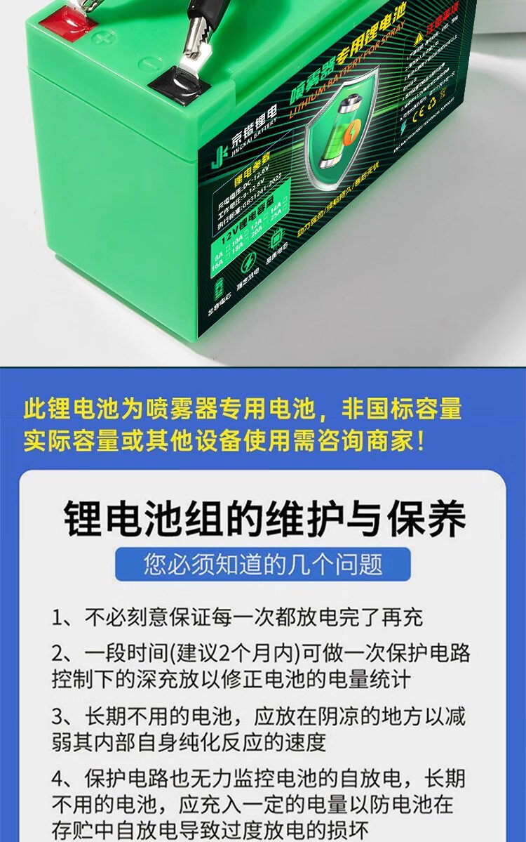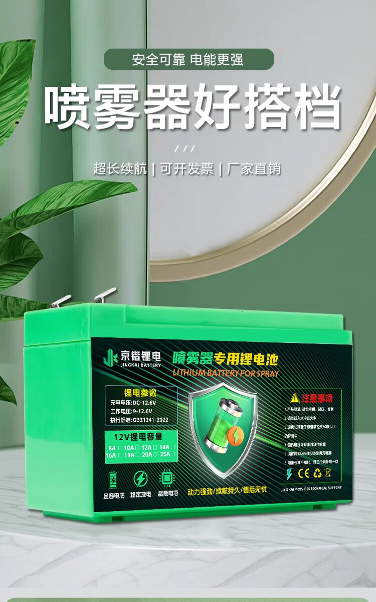 Jingkai lithium battery electric sprayer special battery large capacity agricultural battery backpack accessories 12V8AH