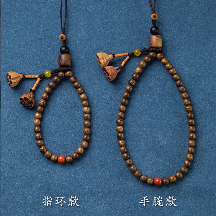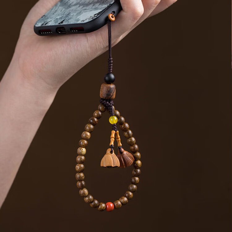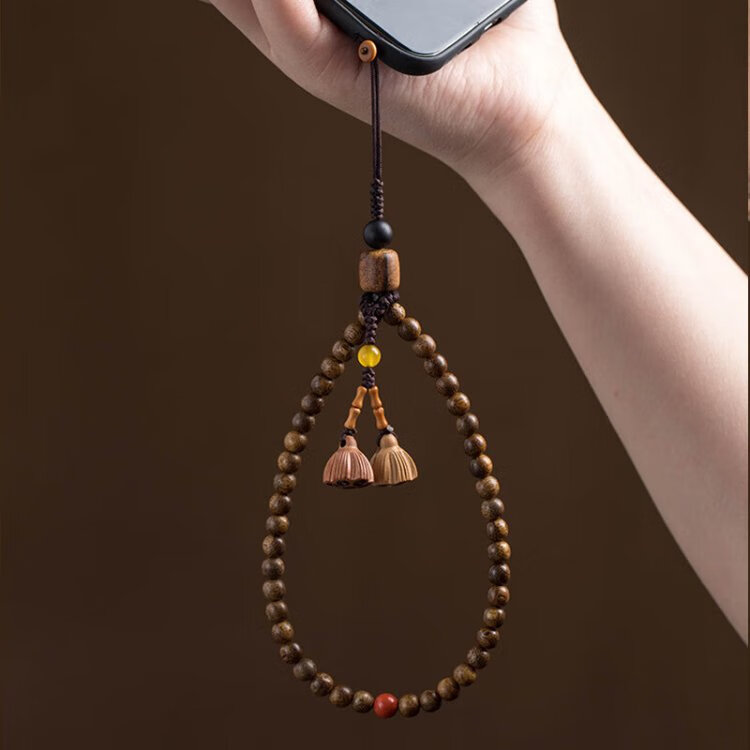 Beiyipin mobile phone lanyard wrist mobile phone lanyard Chinese style retro Kalimantan agarwood mobile phone lanyard beaded women's lanyard short wrist pendant pendant hanging rope