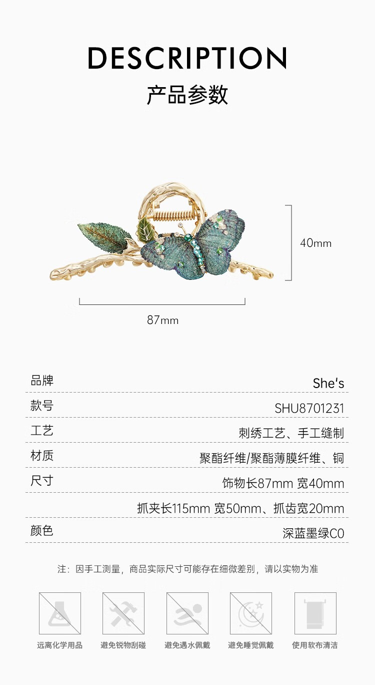 She s Qianzi colorful butterfly dream embroidered butterfly clip back of the head shark hair clip birthday gift for girlfriend