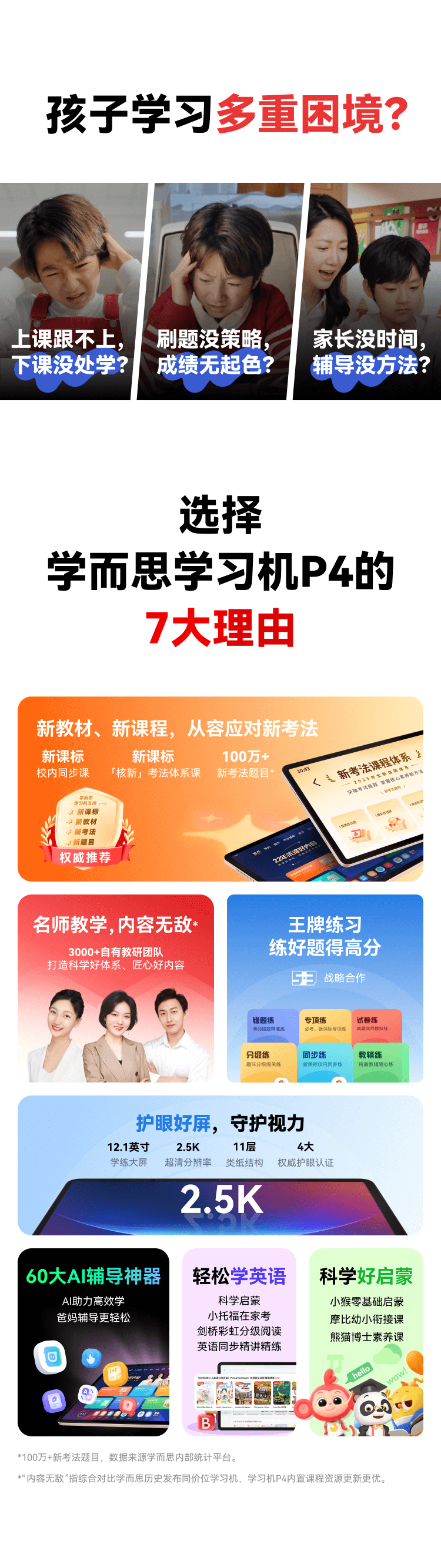 Xueersi Learning Machine P4 Standard Model 2025 New Edition Learning Tablet Primary School to High School Curriculum Synchronization All Subjects All Ages AI Computer Exclusive Color Box for Junior and Middle School Children