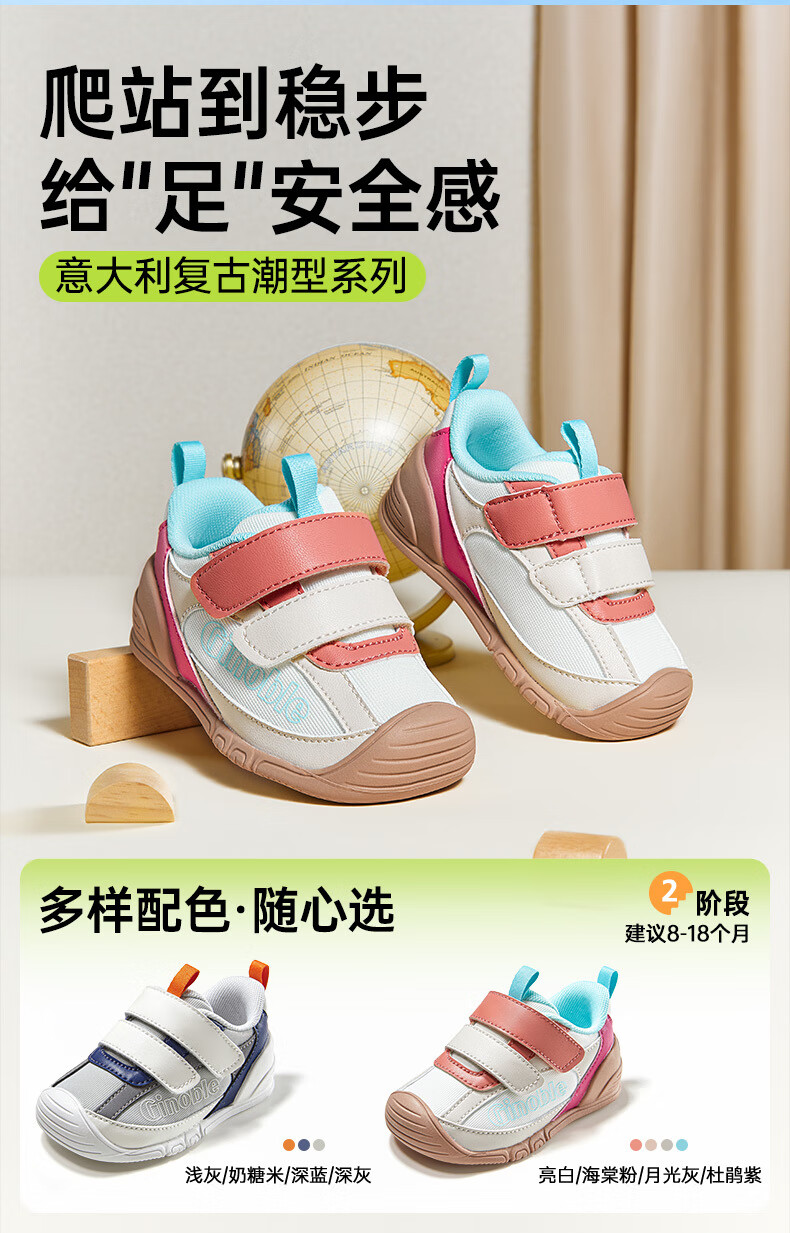 Jinopu baby walking shoes 2025 autumn new children's toddler shoes men's and women's baby shoes spring and autumn GB2455 light gray