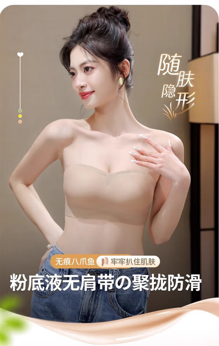 Langsha Liquid Foundation Invisible Transparent Strapless Underwear Women's Anti-Slip Gathering Seamless Tube Top Anti-Exposed Wrap Chest Beautiful Back Bra