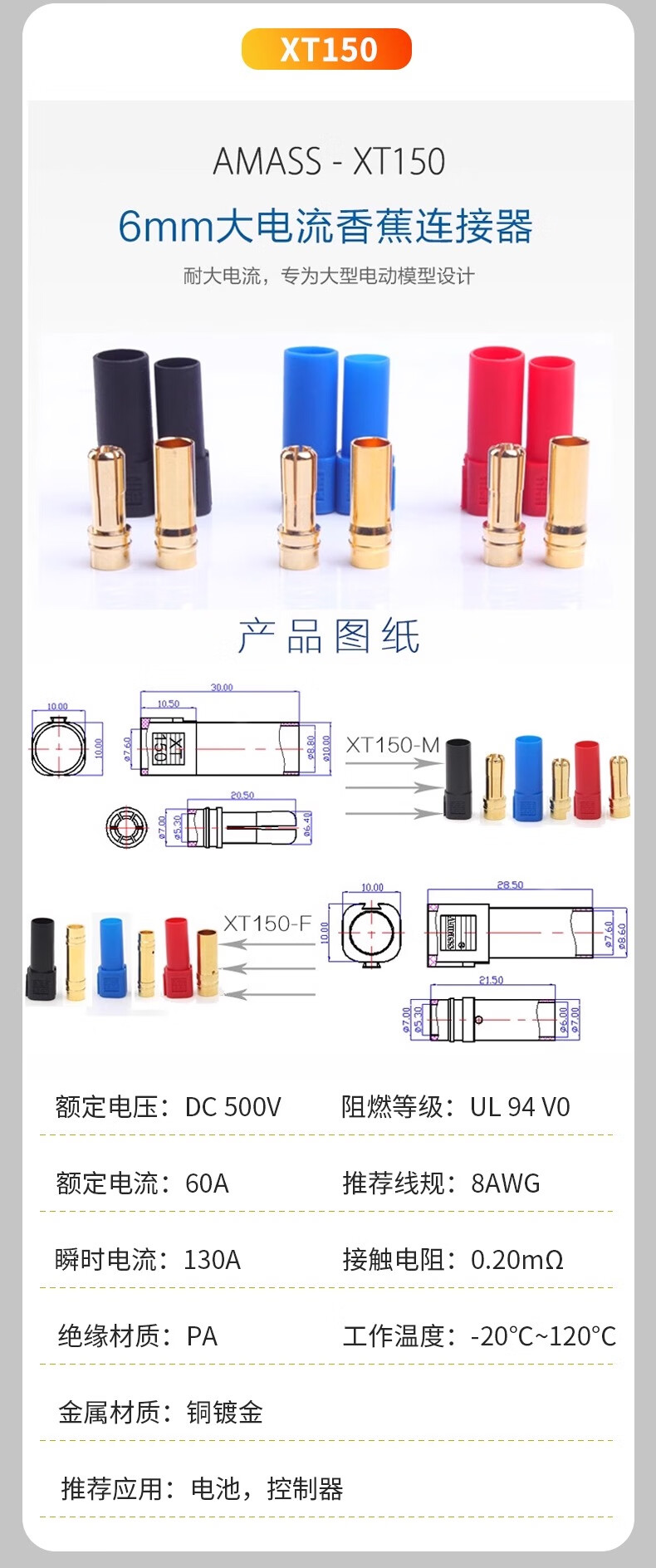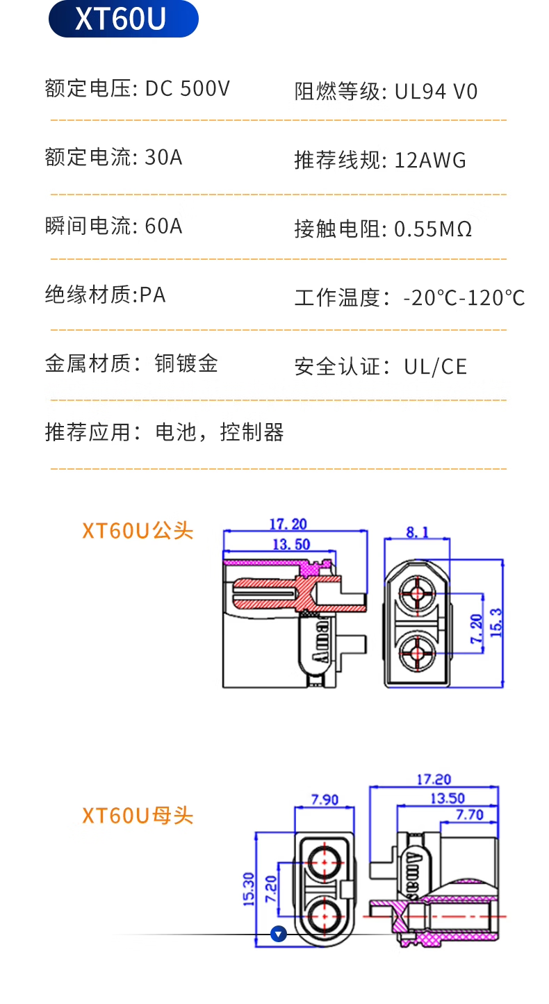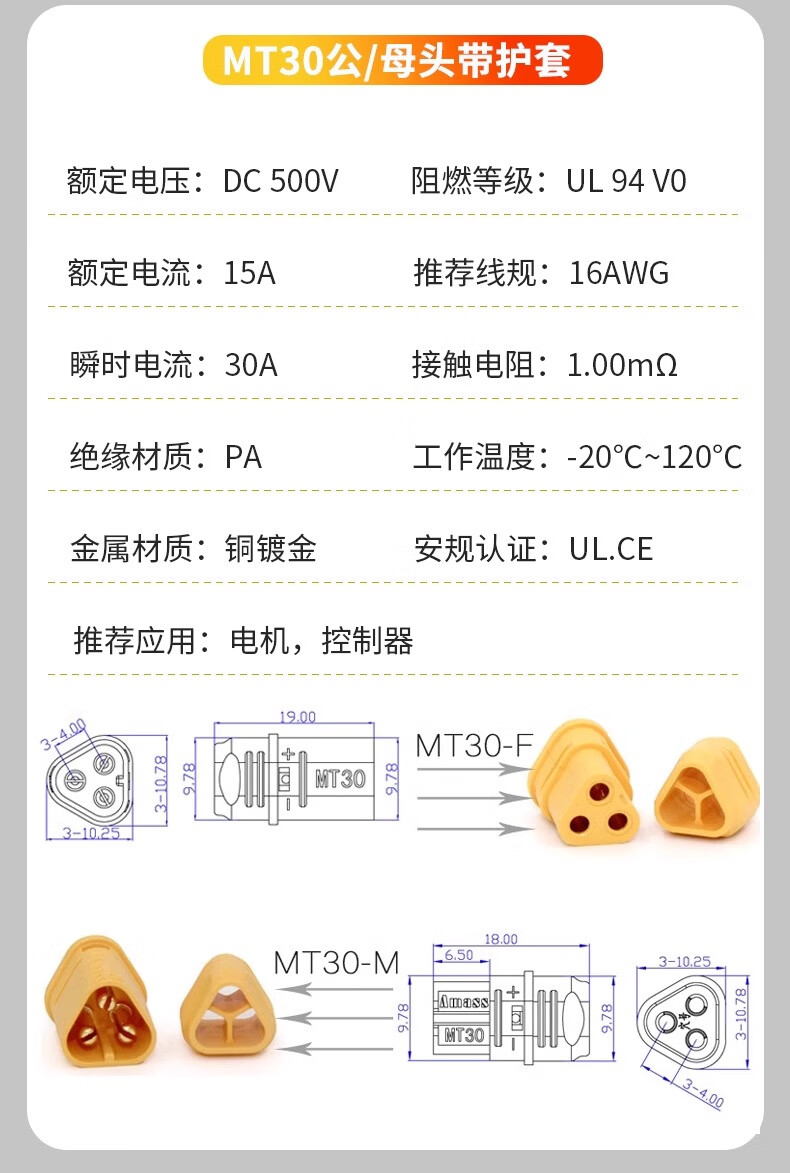 Zave connector XT90H male (with sheath)