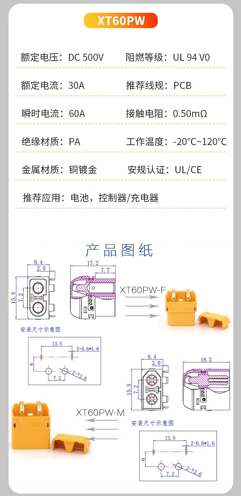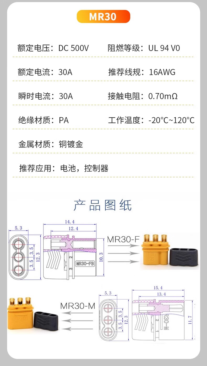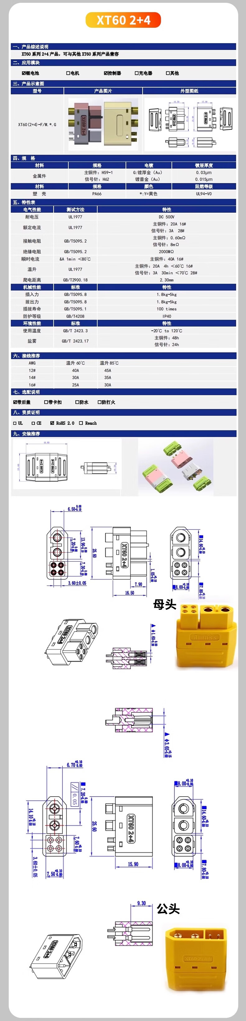 Zave connector XT90H male (with sheath)