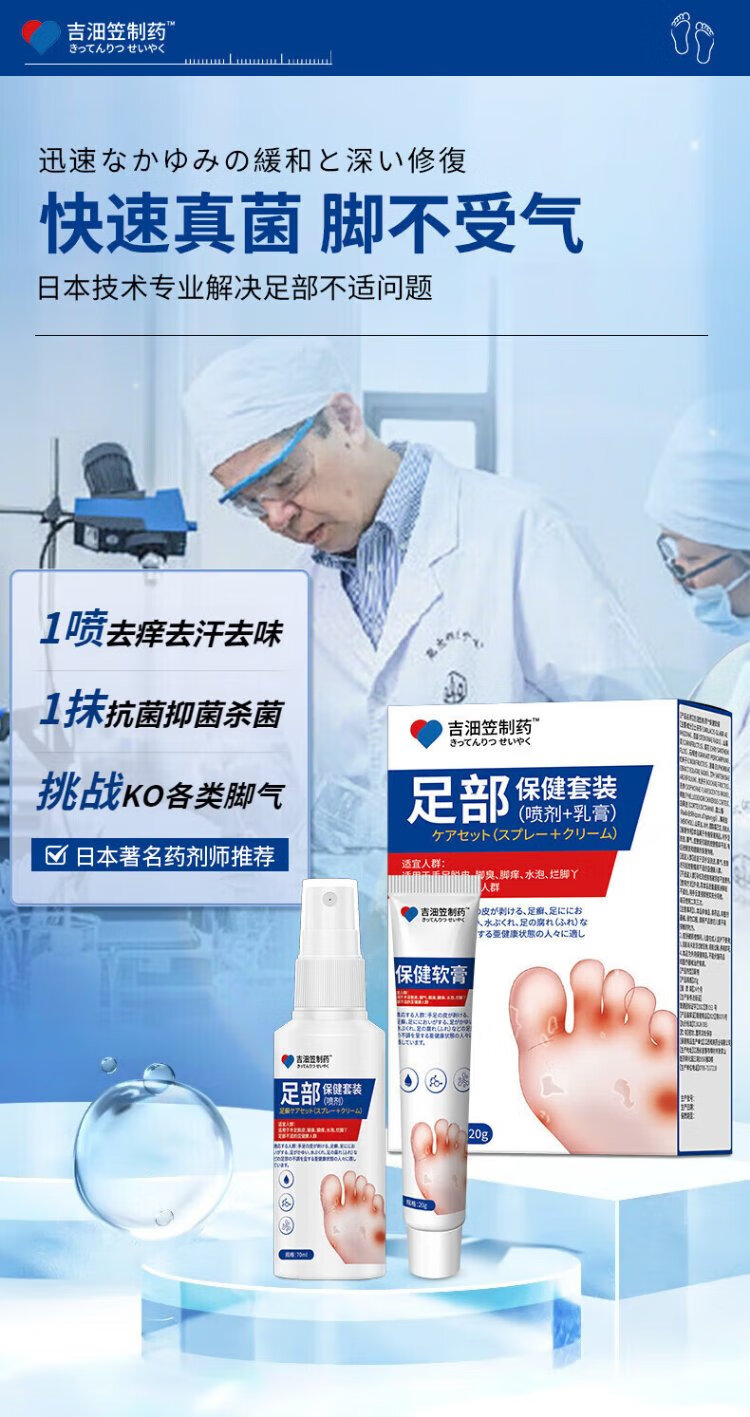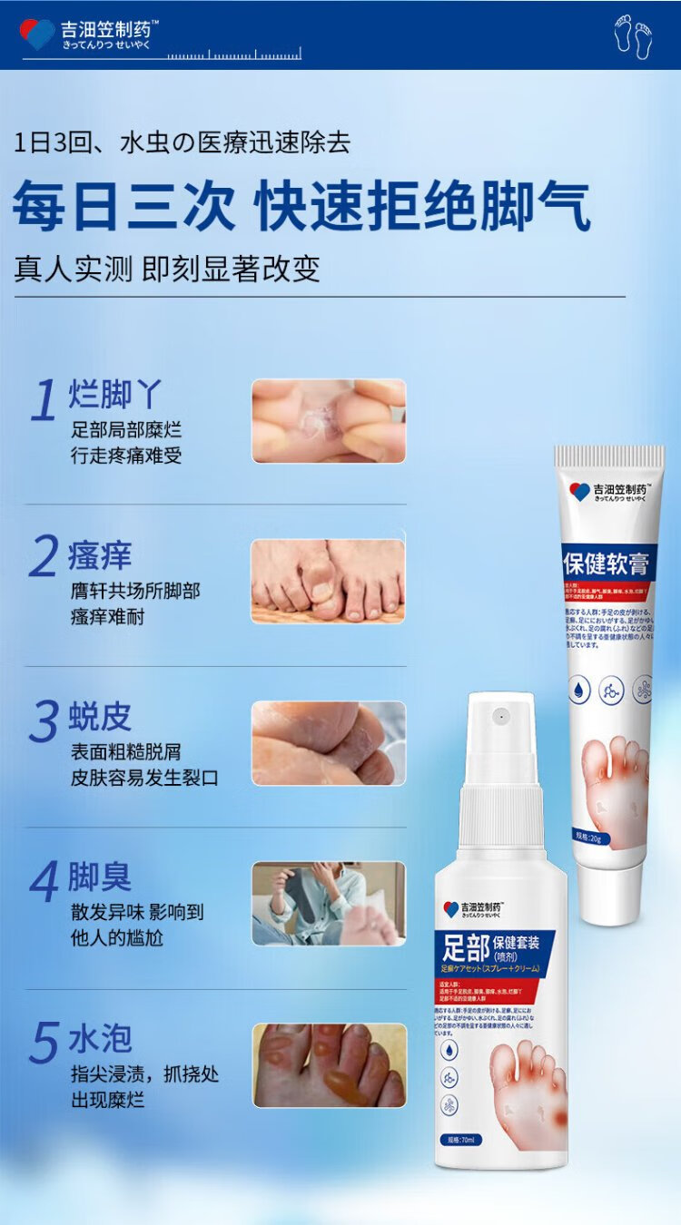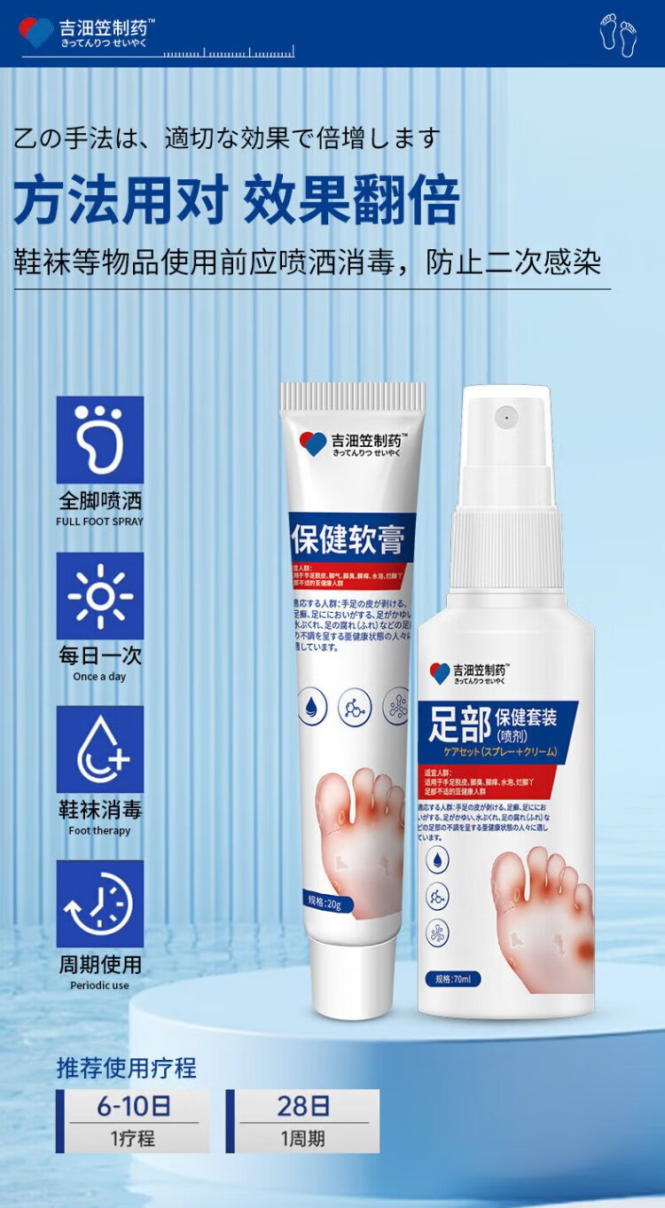 Jilinli Pharmaceutical Japanese athlete's foot spray cream set peeling hands and feet, rotten feet, itchy feet, smelly feet, foot blisters, erosion, skin itching