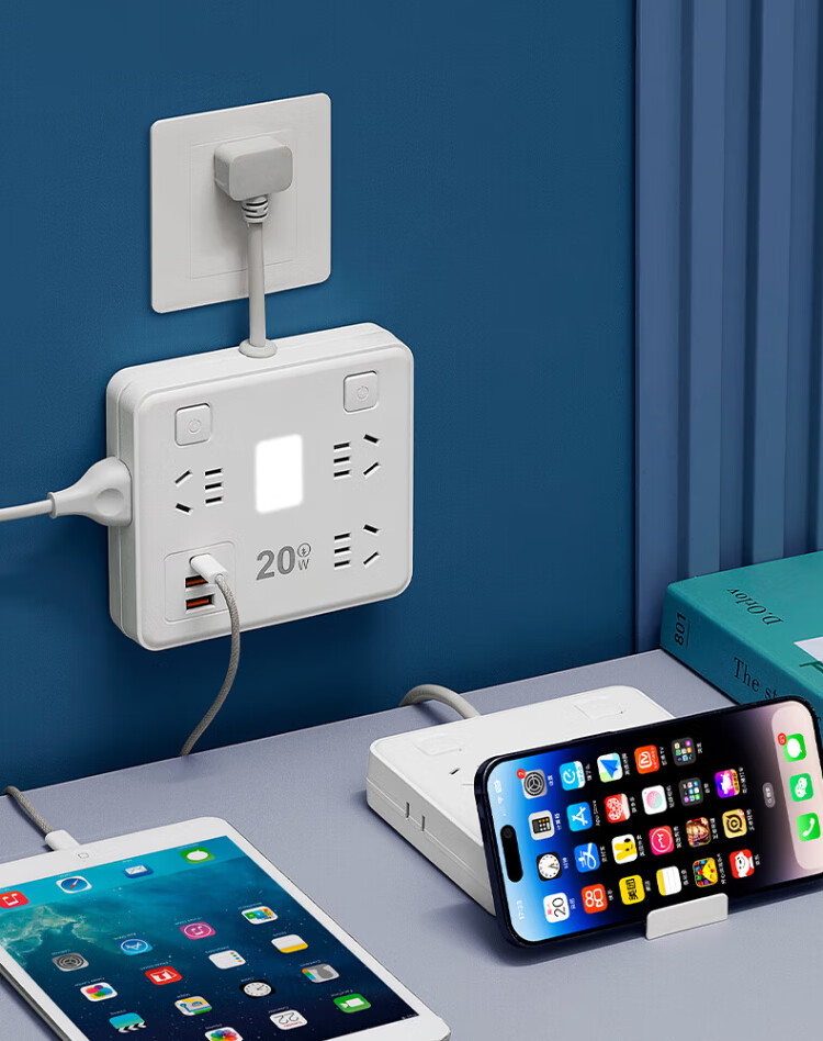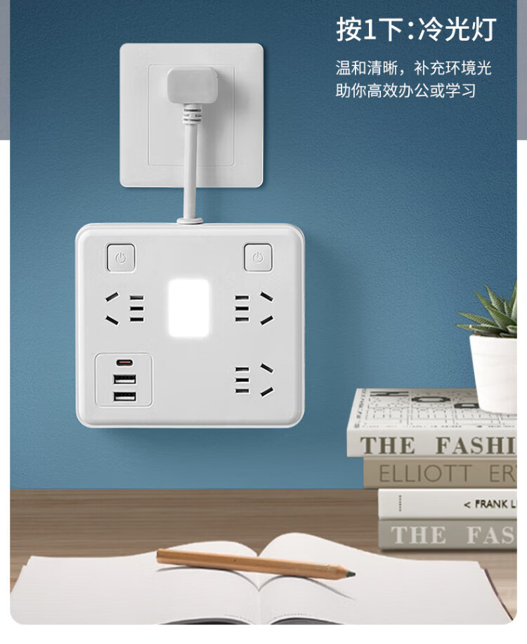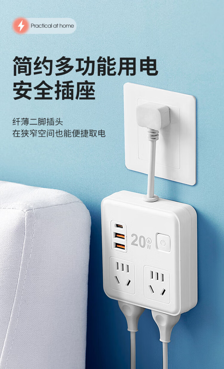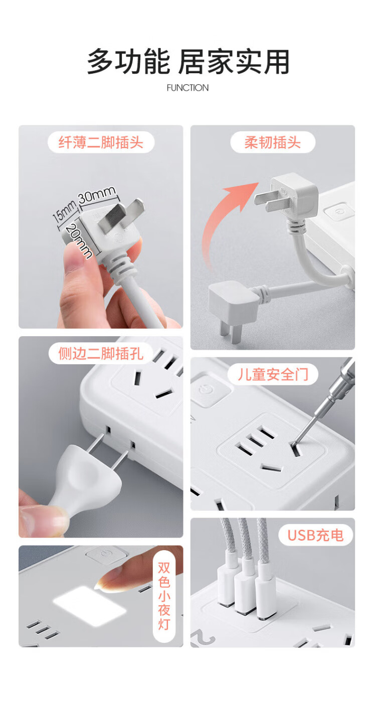 Sushi Helmo 2-pin plug/2-hole plug, two-way five-hole plug strip, 6-position 2U1C+ lamp, 0.1 meter multi-function sub-control, study abroad, Japan/Thailand/Philippines two-way plug board