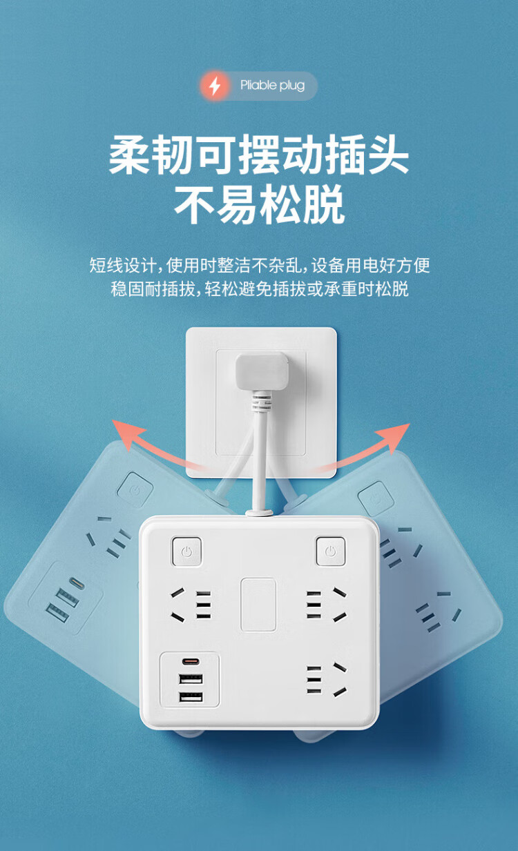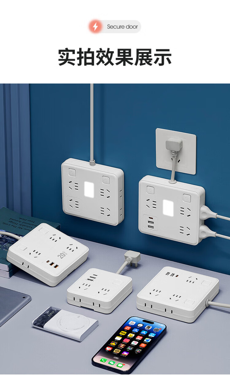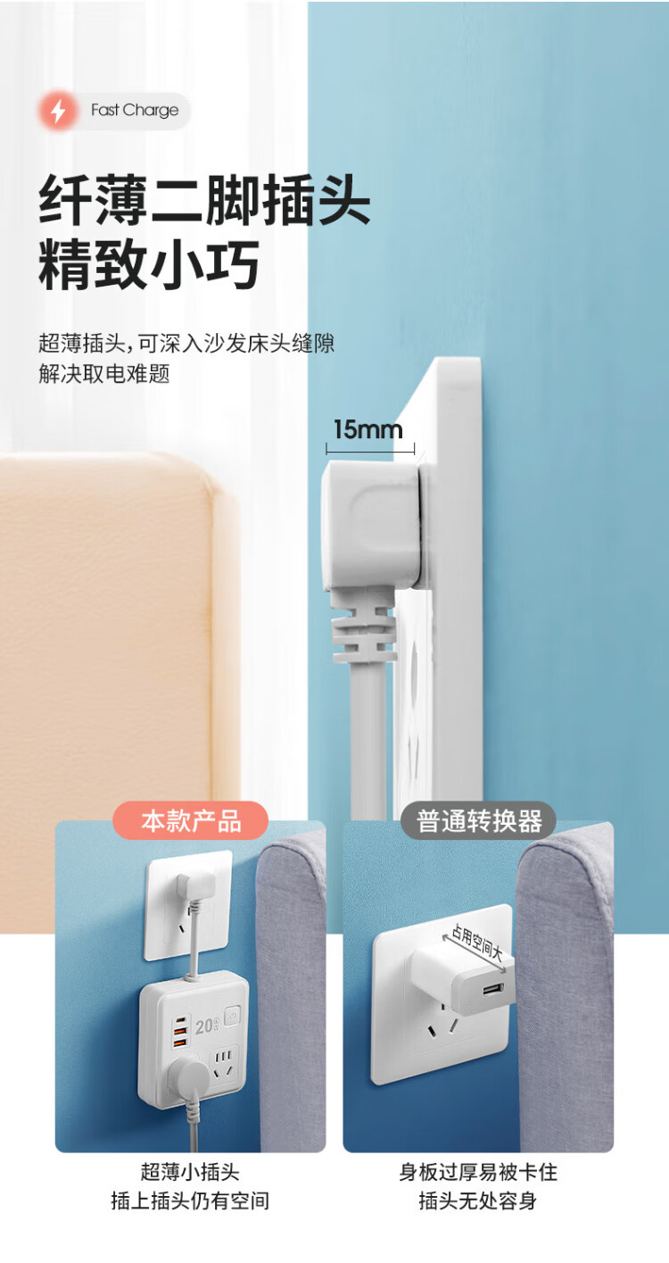 Sushi Helmo 2-pin plug/2-hole plug, two-way five-hole plug strip, 6-position 2U1C+ lamp, 0.1 meter multi-function sub-control, study abroad, Japan/Thailand/Philippines two-way plug board