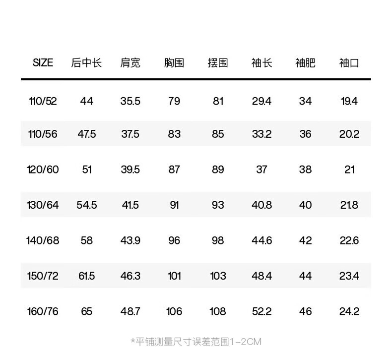 China (cm) 160-165/84-86 165-170 / 88-90 167-172 / 92-96 168-173 / 98-102 170-176 / 106-110
