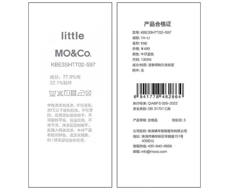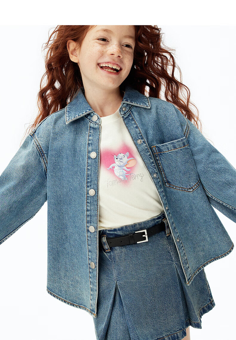 Little MO&Co. Tom and Jerry joint series little moco children's clothing 25 autumn clothing for boys and girls cool antibacterial denim shirt
