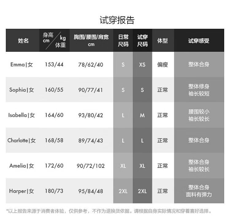 China (cm) 160-165/84-86 165-170 / 88-90 167-172 / 92-96 168-173 / 98-102 170-176 / 106-110