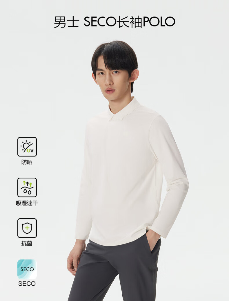 KOLON SPORT Men's SECO long-sleeved POLO urban commuting inner wear antibacterial moisture absorption quick-drying sun protection UPF50+ T-shirt