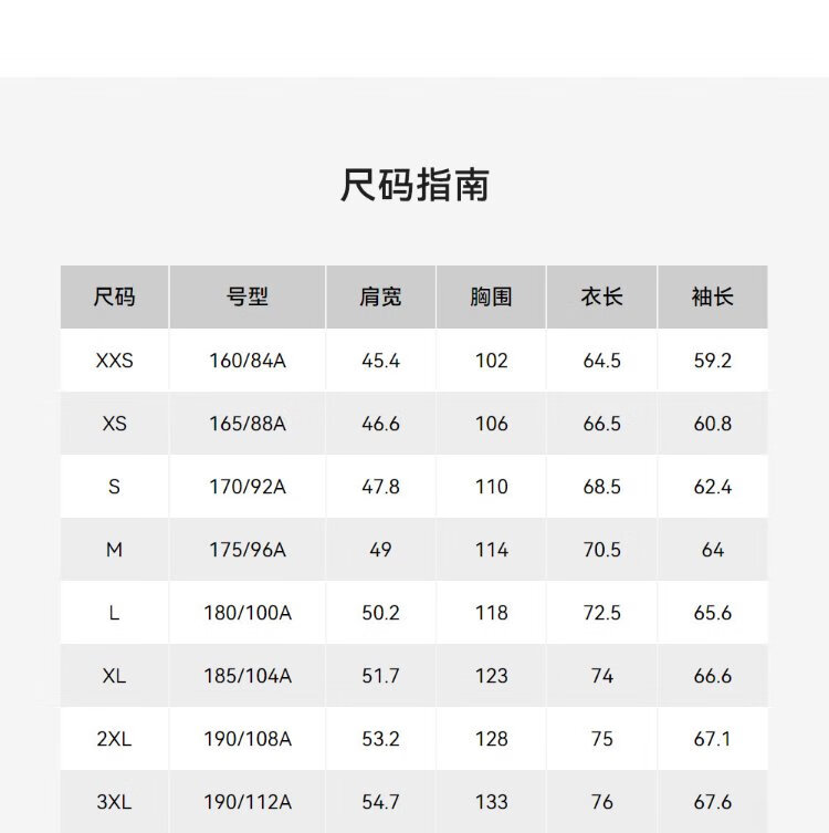 China (cm) 160-165/84-86 165-170 / 88-90 167-172 / 92-96 168-173 / 98-102 170-176 / 106-110