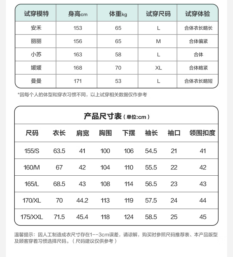 China (cm) 160-165/84-86 165-170 / 88-90 167-172 / 92-96 168-173 / 98-102 170-176 / 106-110