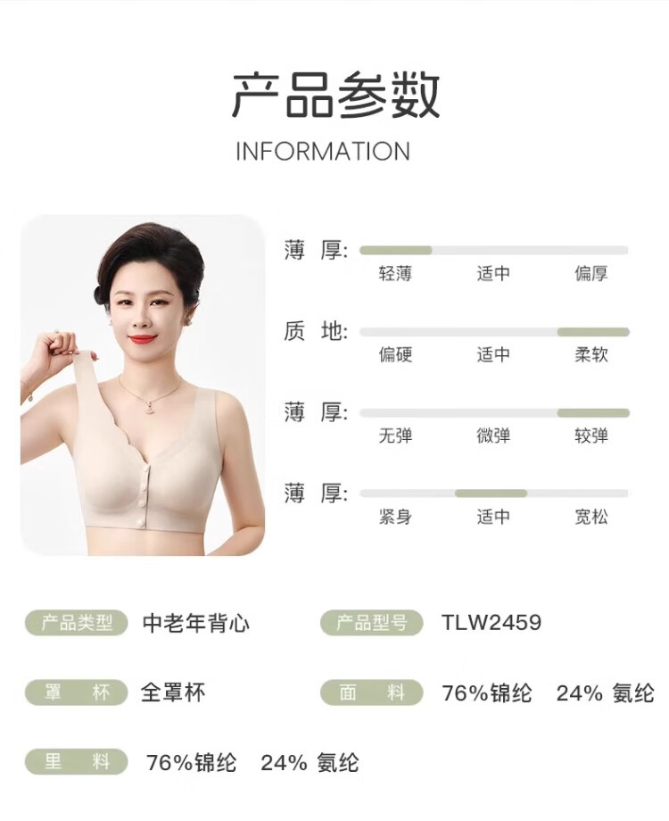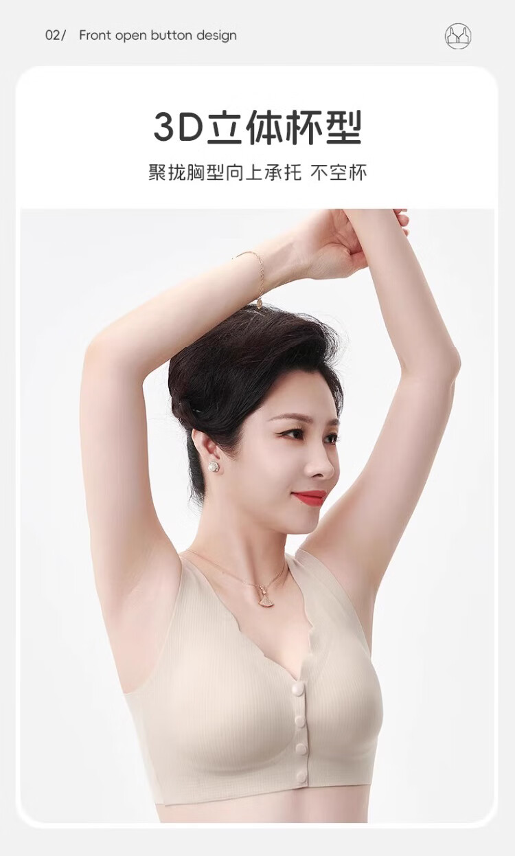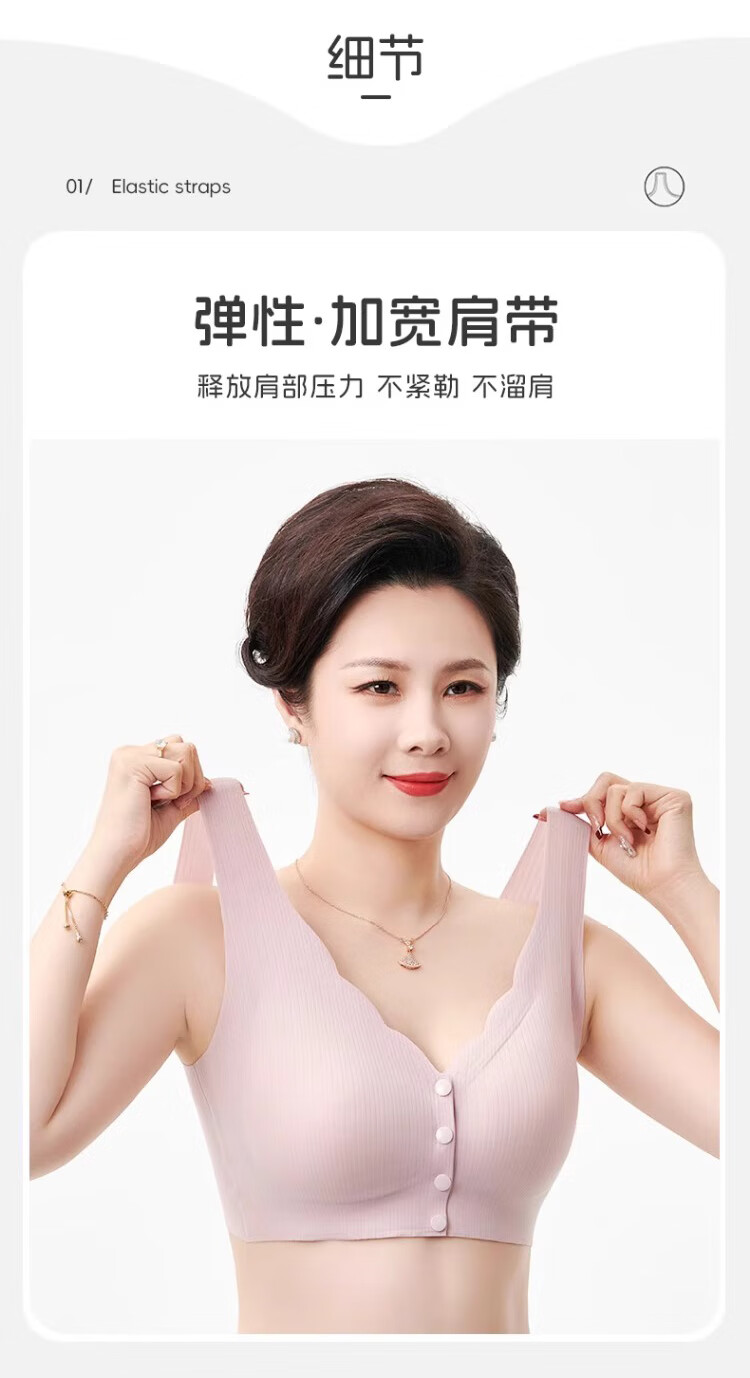Yu Zhaolin middle-aged and elderly mothers' bra without rims, middle-aged women's front-button vest-style breast-retracting bra, maternity underwear
