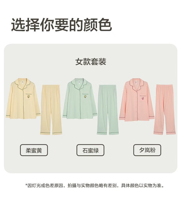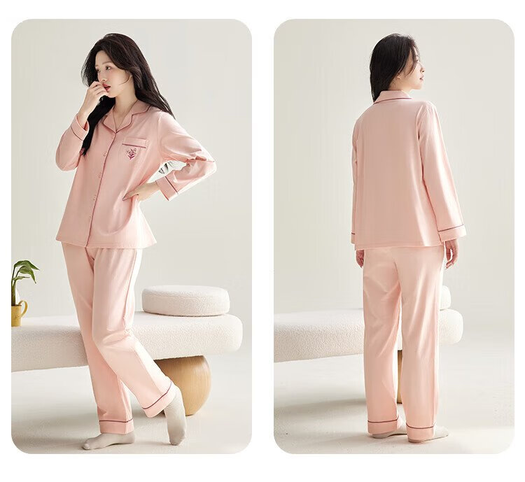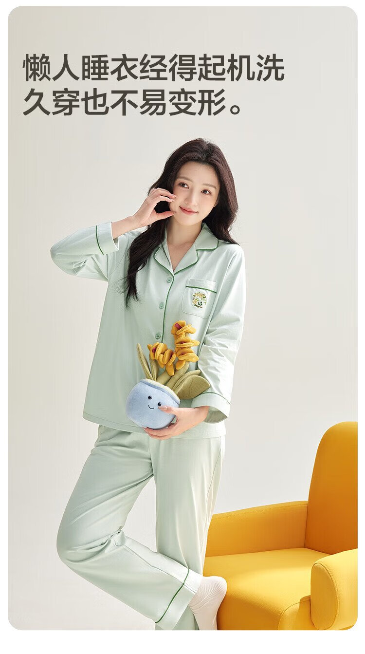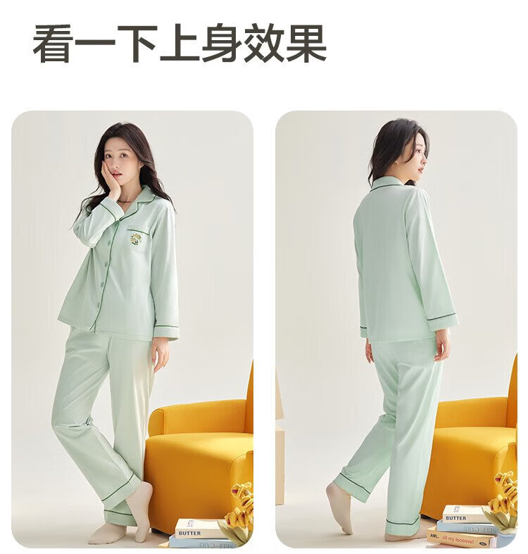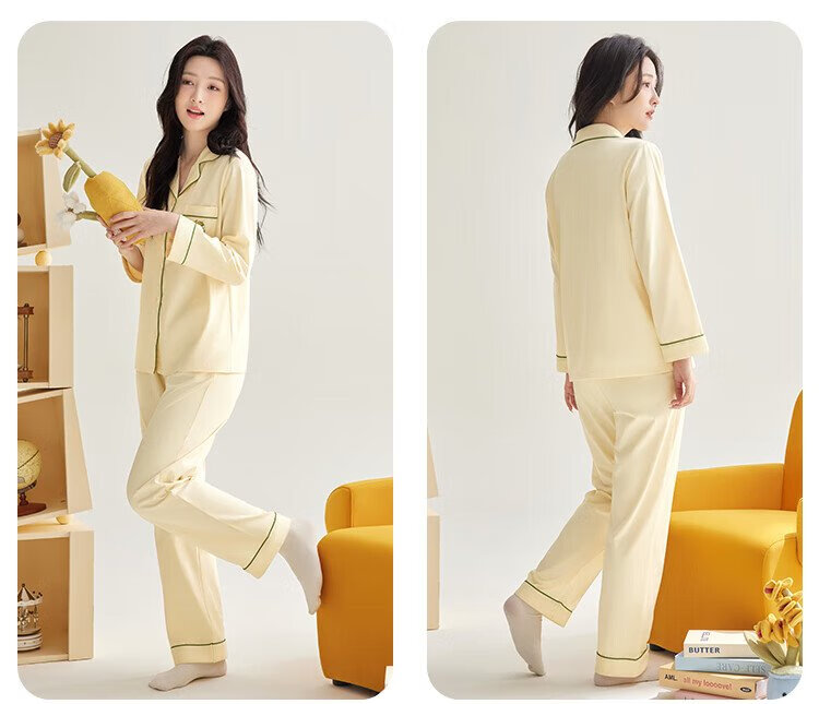 Hongdou home pure cotton pajamas for women spring and autumn long-sleeved embroidered cardigan home wear set M (165) soft honey yellow