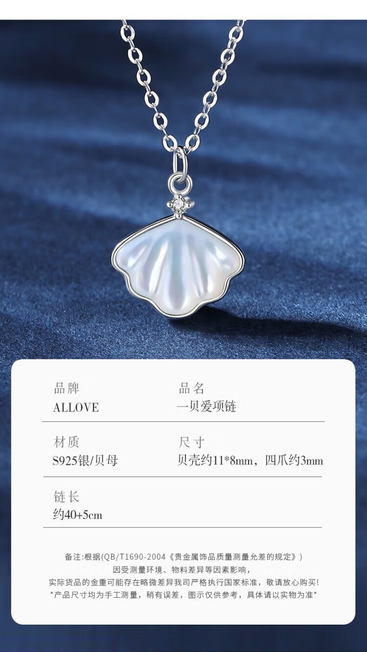 ALLOVE Yibeizi sterling silver necklace women's pendant jewelry girls birthday gift for girlfriend wife lady light luxury niche