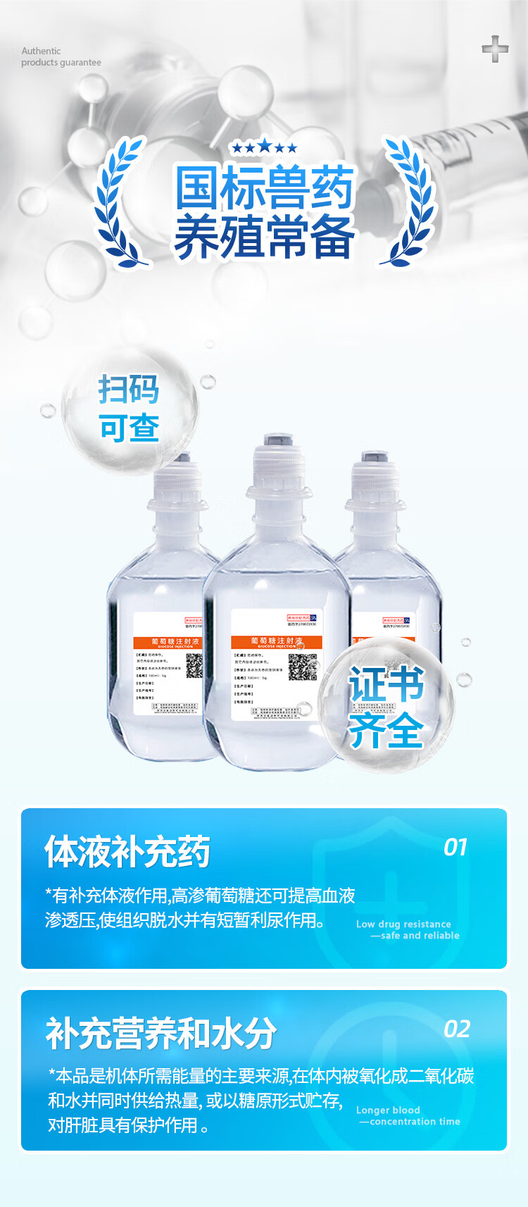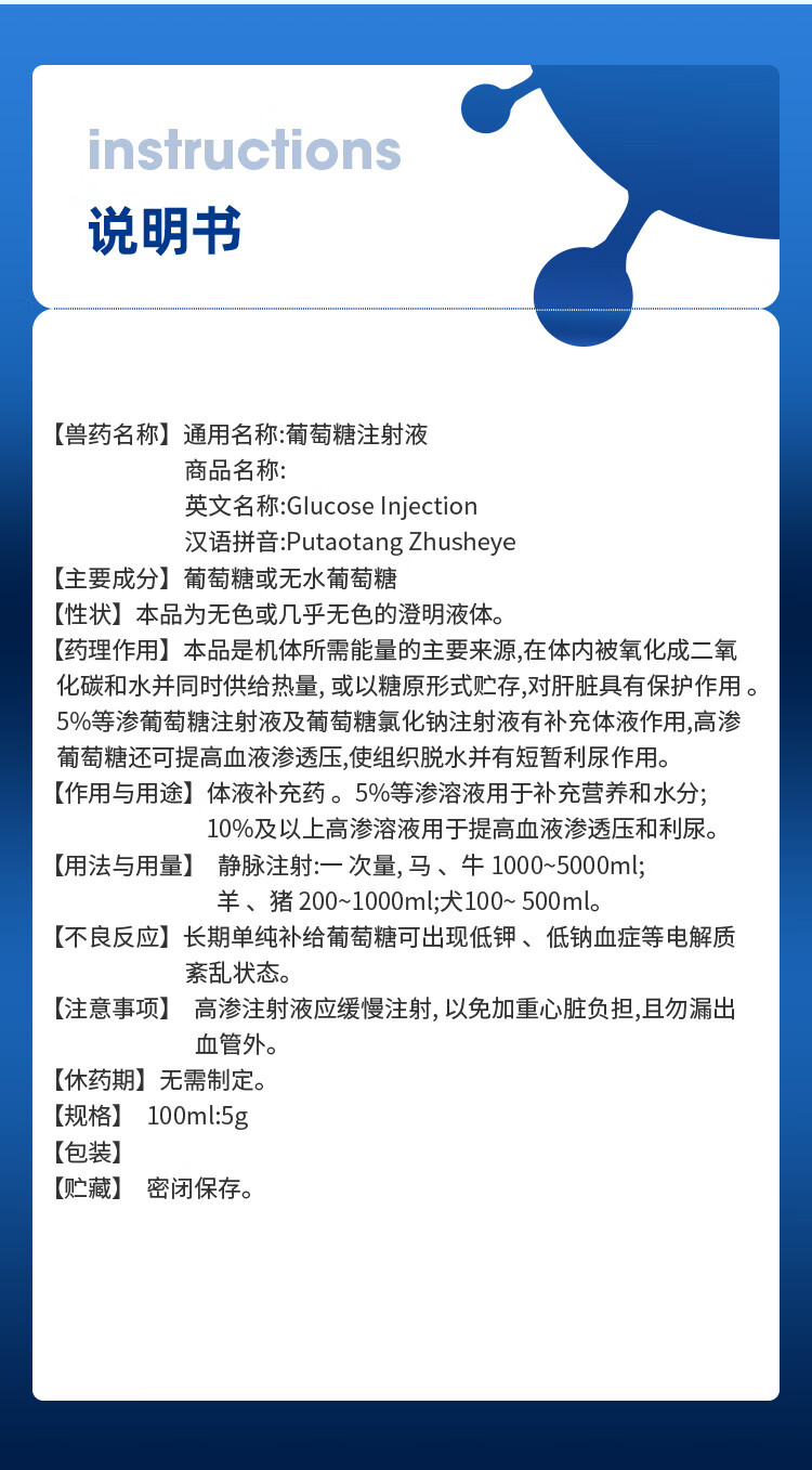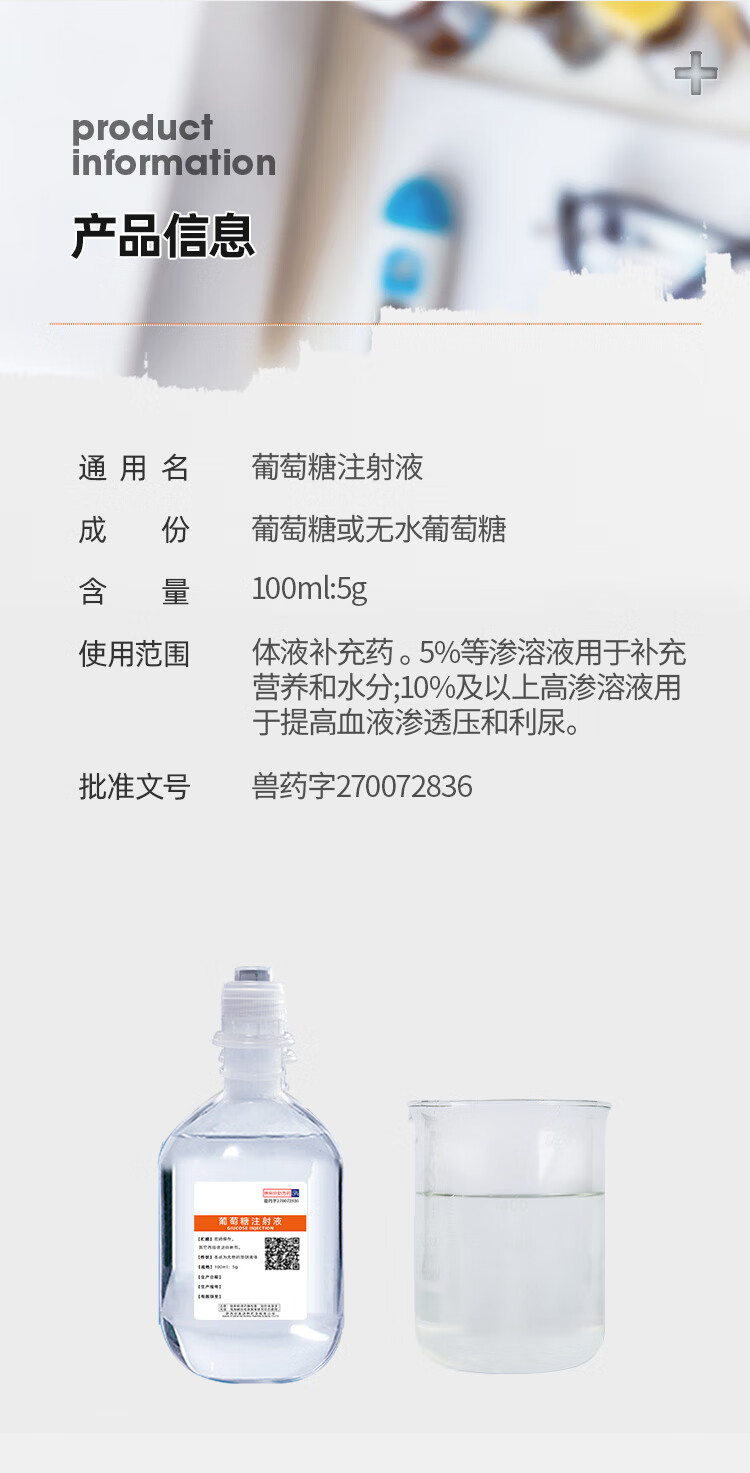 Senao 5% glucose injection 100ml pet dog veterinary supplementary body fluid nutrition hydration dehydration infusion