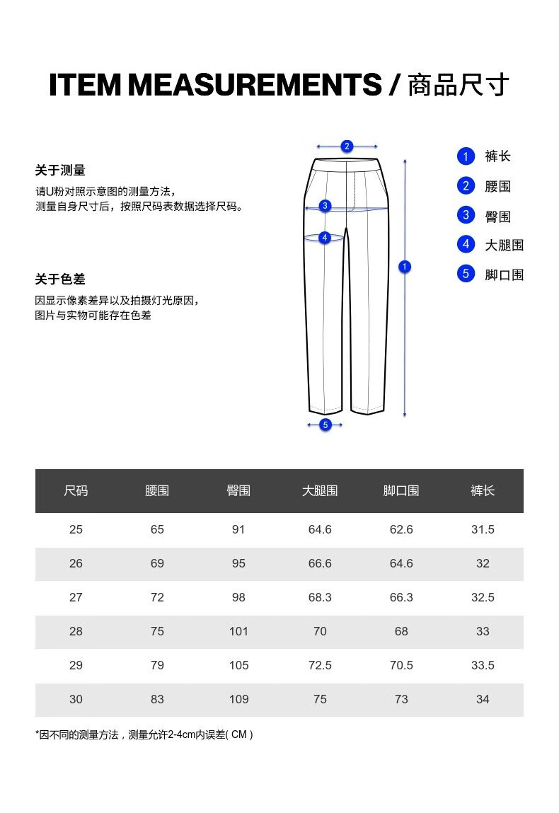 Outseam (cm) 99 cm 101.5 cm 104 cm 106.5 cm 109 cm