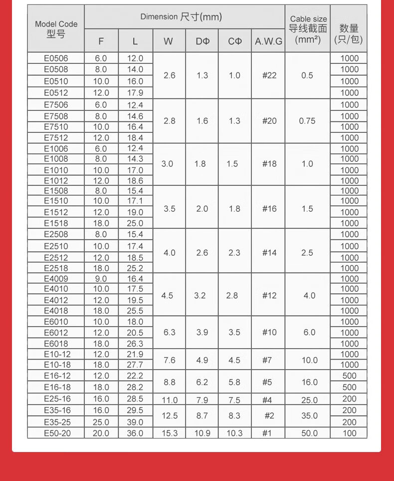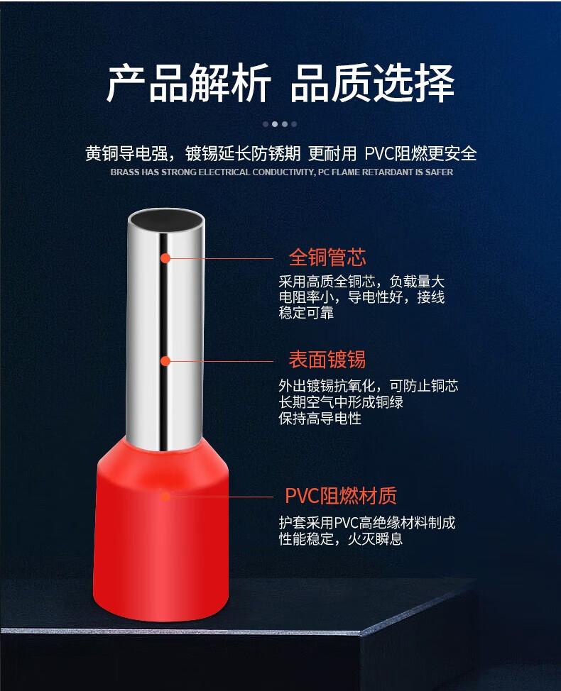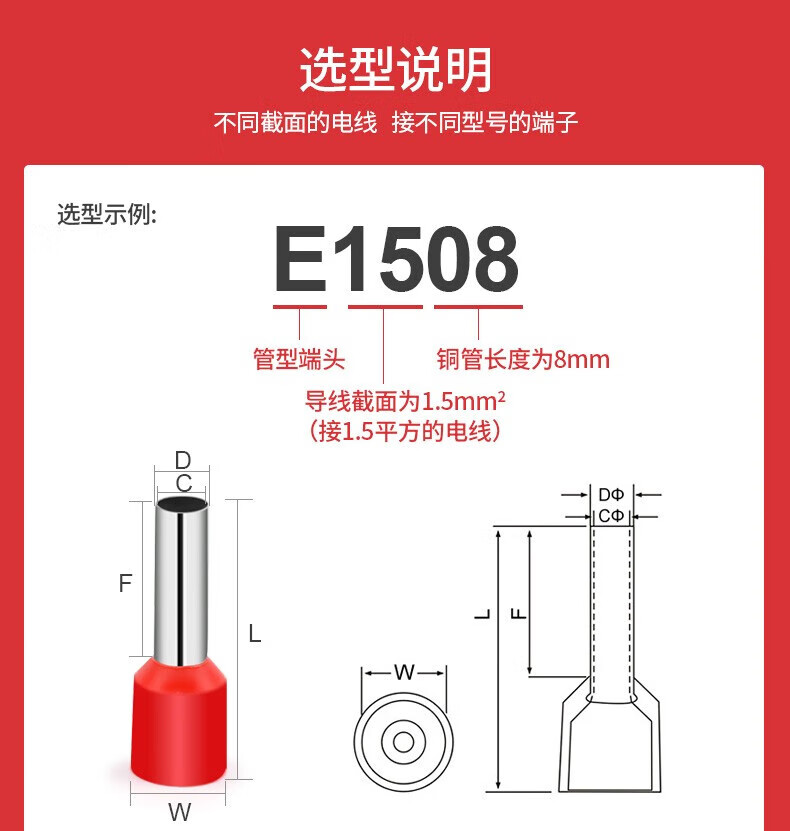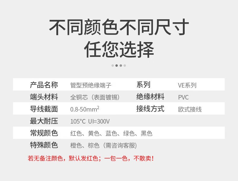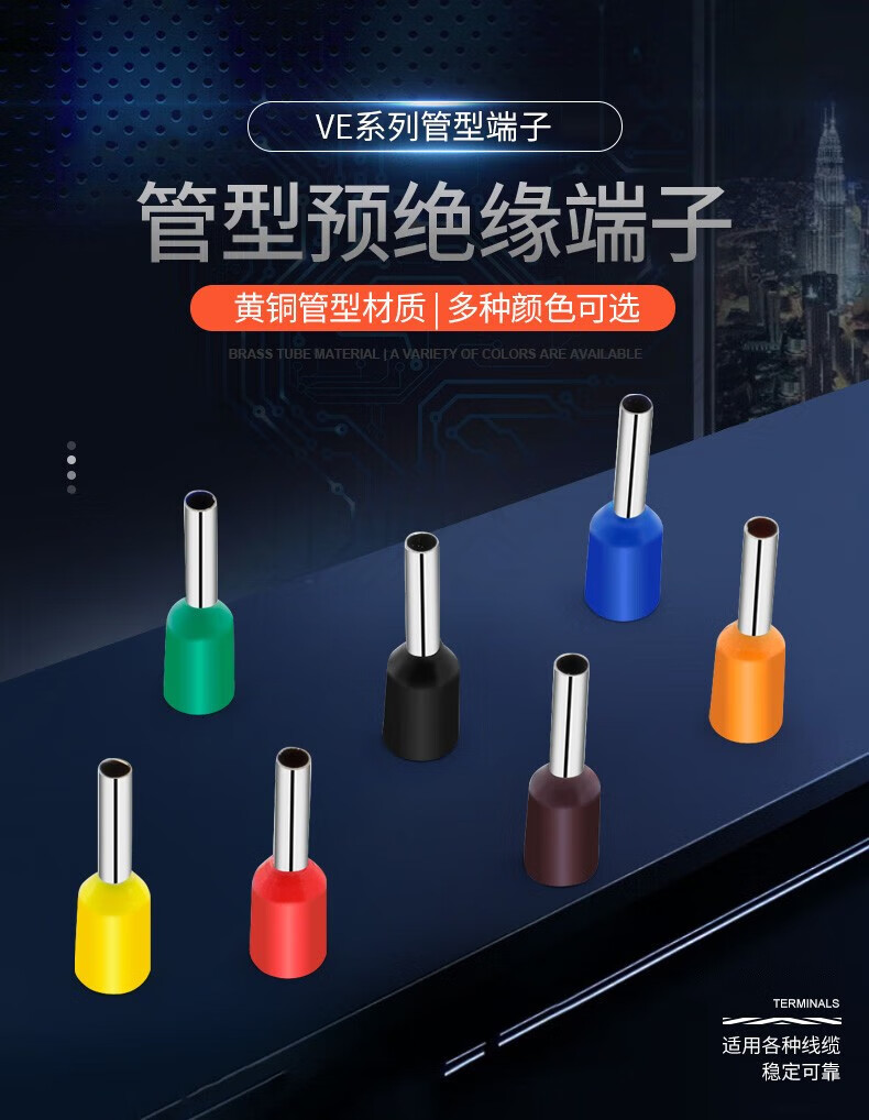 Huijun tubular terminal block cold-pressed terminal pre-insulated terminal brass wire connector red VE3516/200 only 35 square meters