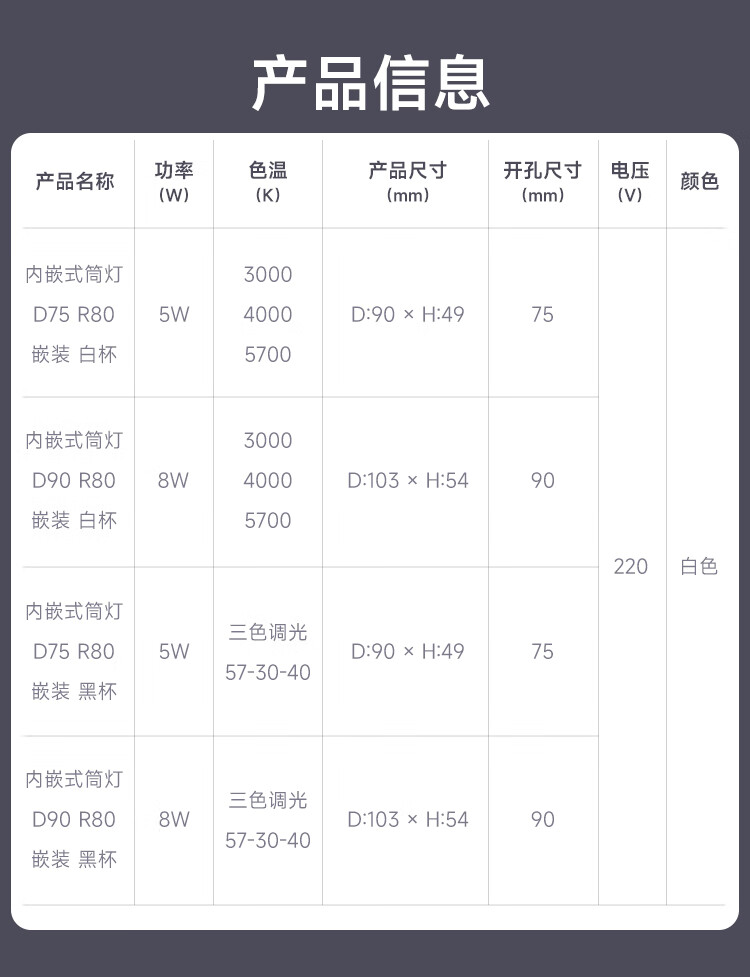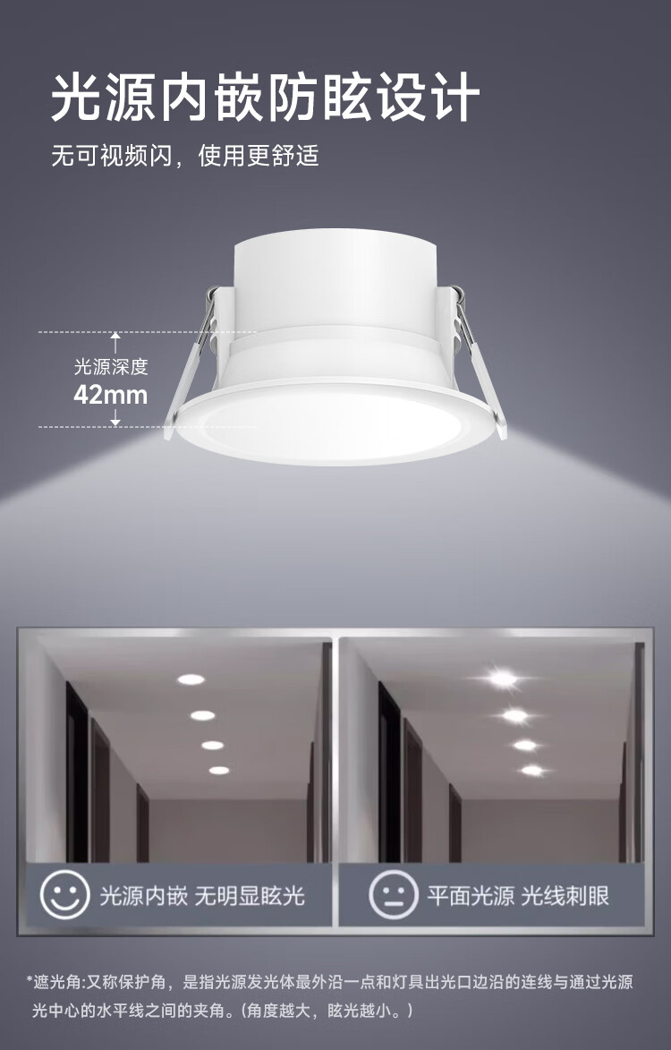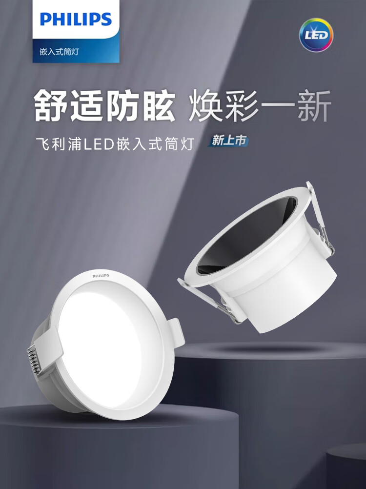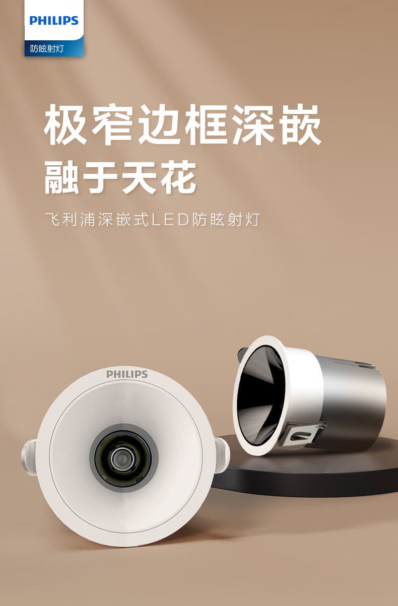 Philips downlight embedded led anti-glare narrow frame living room home three-color hole light ceiling aisle corridor ceiling light 10W medium light hole 75mm 36 beam angle white cup