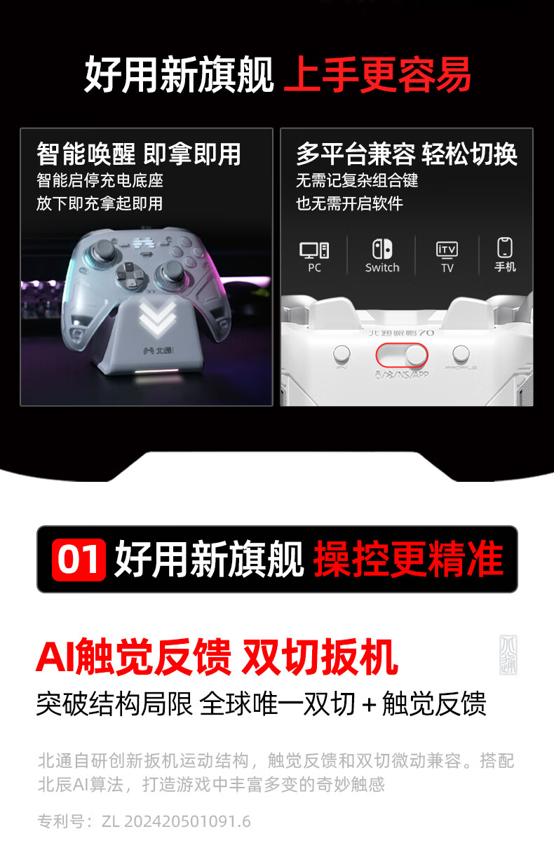 Beitong Kunpeng 70 elite wireless game controller AI intelligent control adaptive double-cut trigger rocker xbox computer PC Bluetooth NS somatosensory steam TV switch2 base set