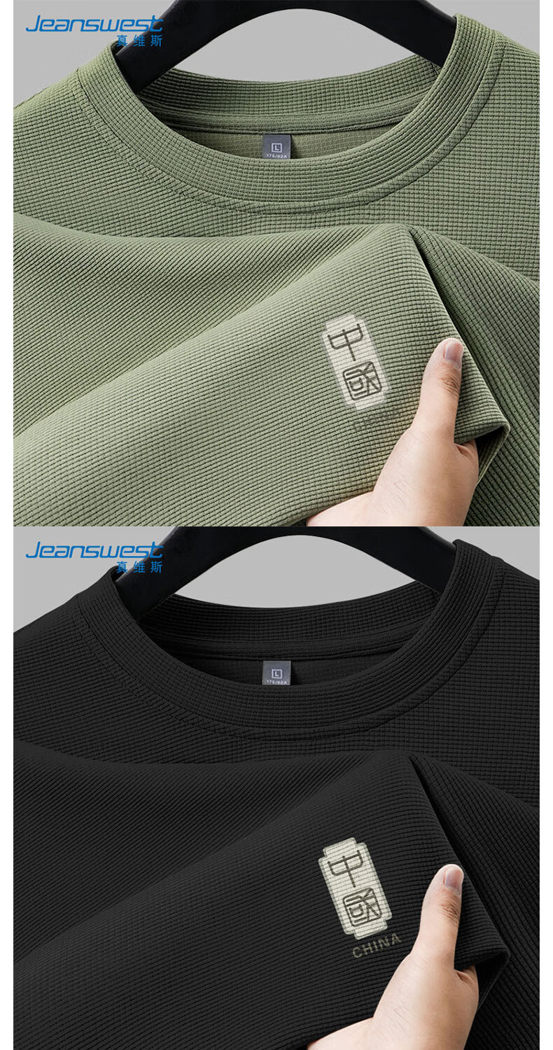JEANSWEST Jeans Waffle Long Sleeve Men's Spring and Autumn Simple Loose Men's T-Shirt Versatile Anti-Wrinkle Wear-Resistant Bottoming Shirt