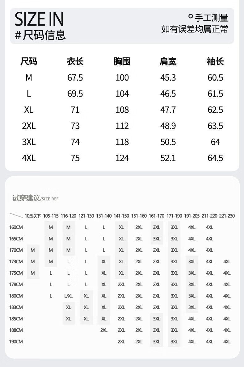 China (cm) 160-165/84-86 165-170 / 88-90 167-172 / 92-96 168-173 / 98-102 170-176 / 106-110