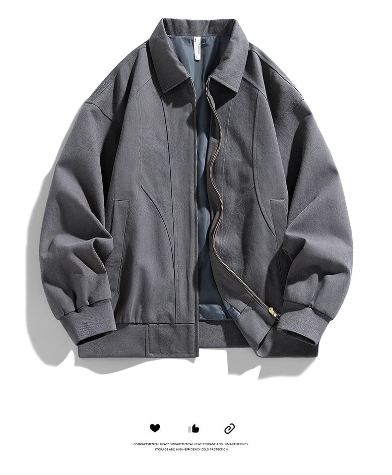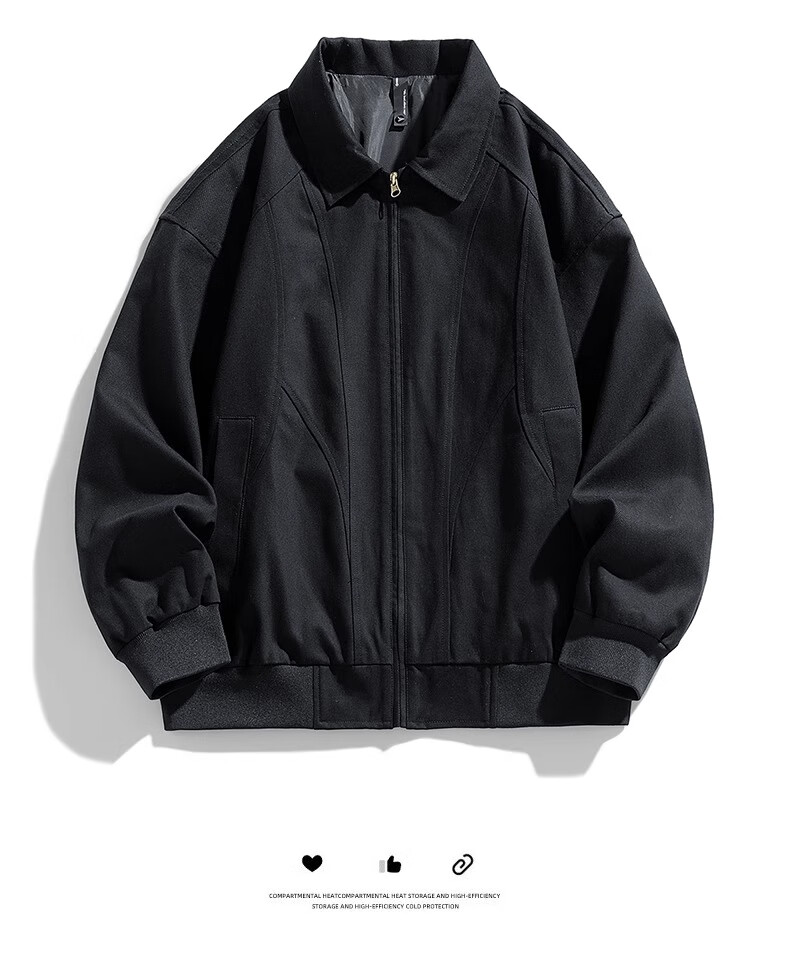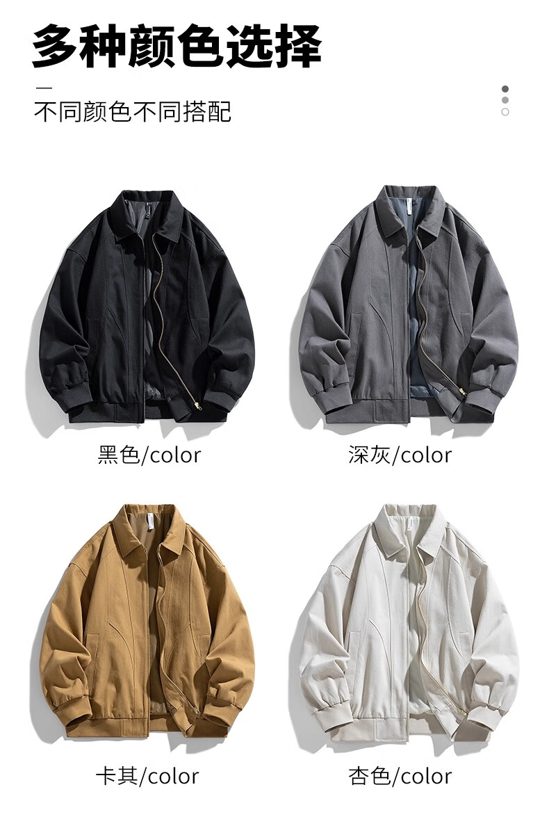 Wassup Sohot Jacket Men's Autumn and Winter Pure Cotton Washed Retro Jacket Men's Slim Lapel Work Jacket Black XL