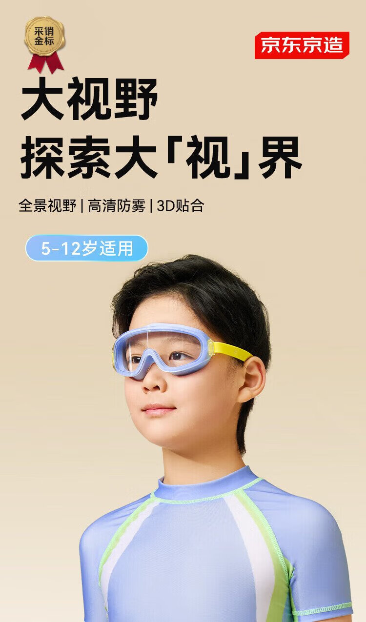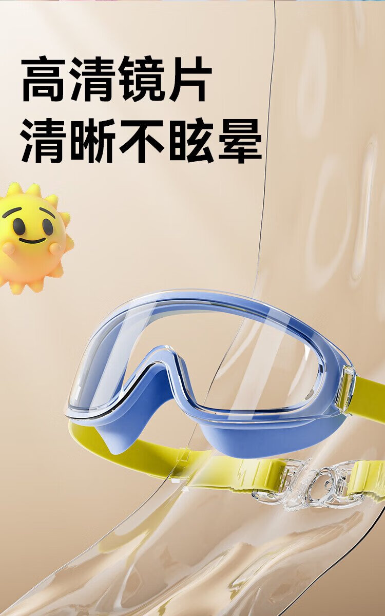 Made in Tokyo, children's swimming goggles for boys and girls, high-definition waterproof and anti-fog, large-frame professional swimming training goggles, blue and yellow