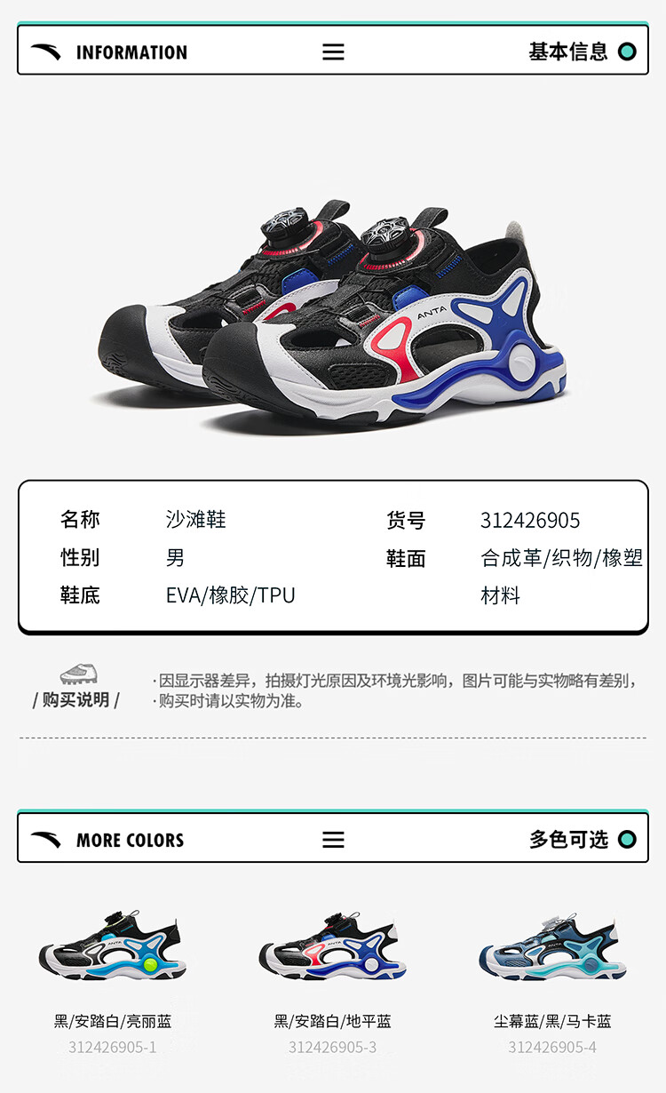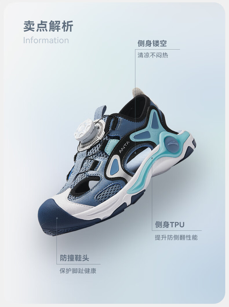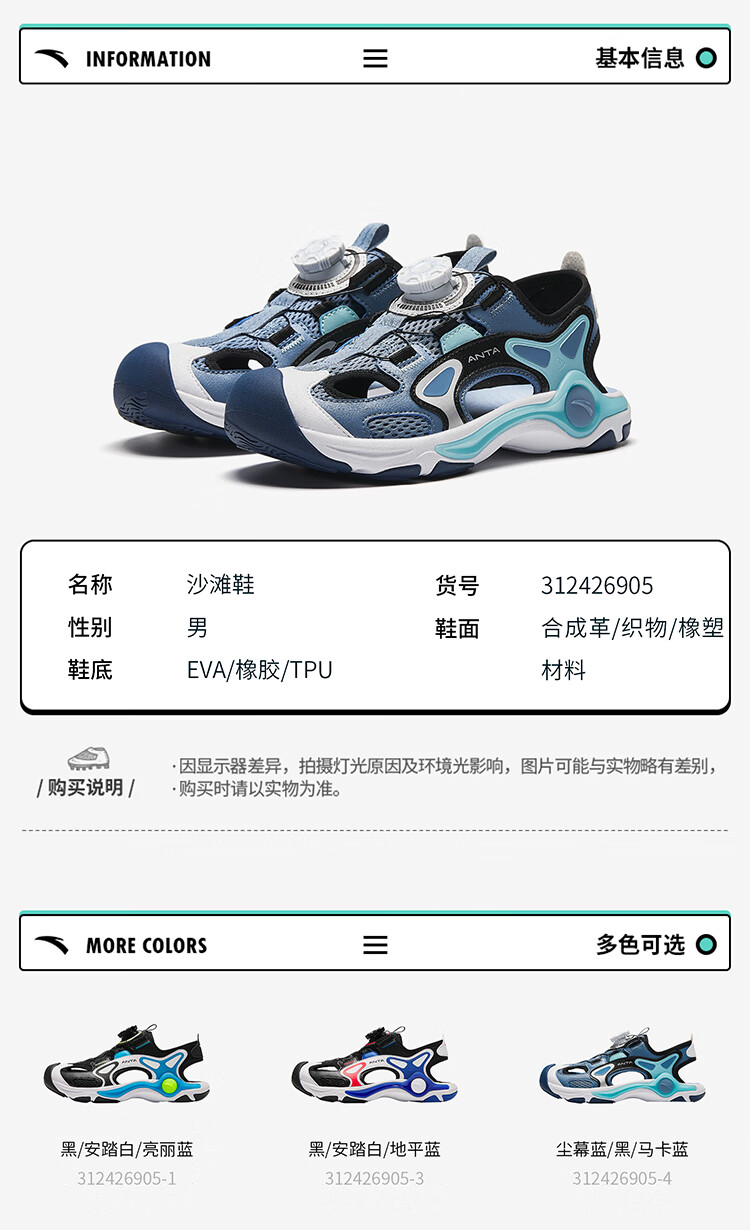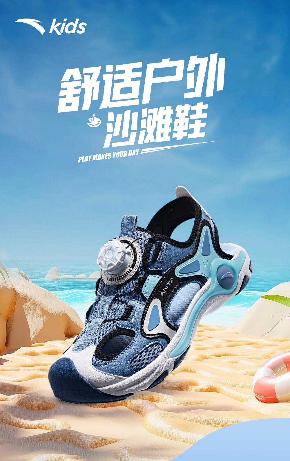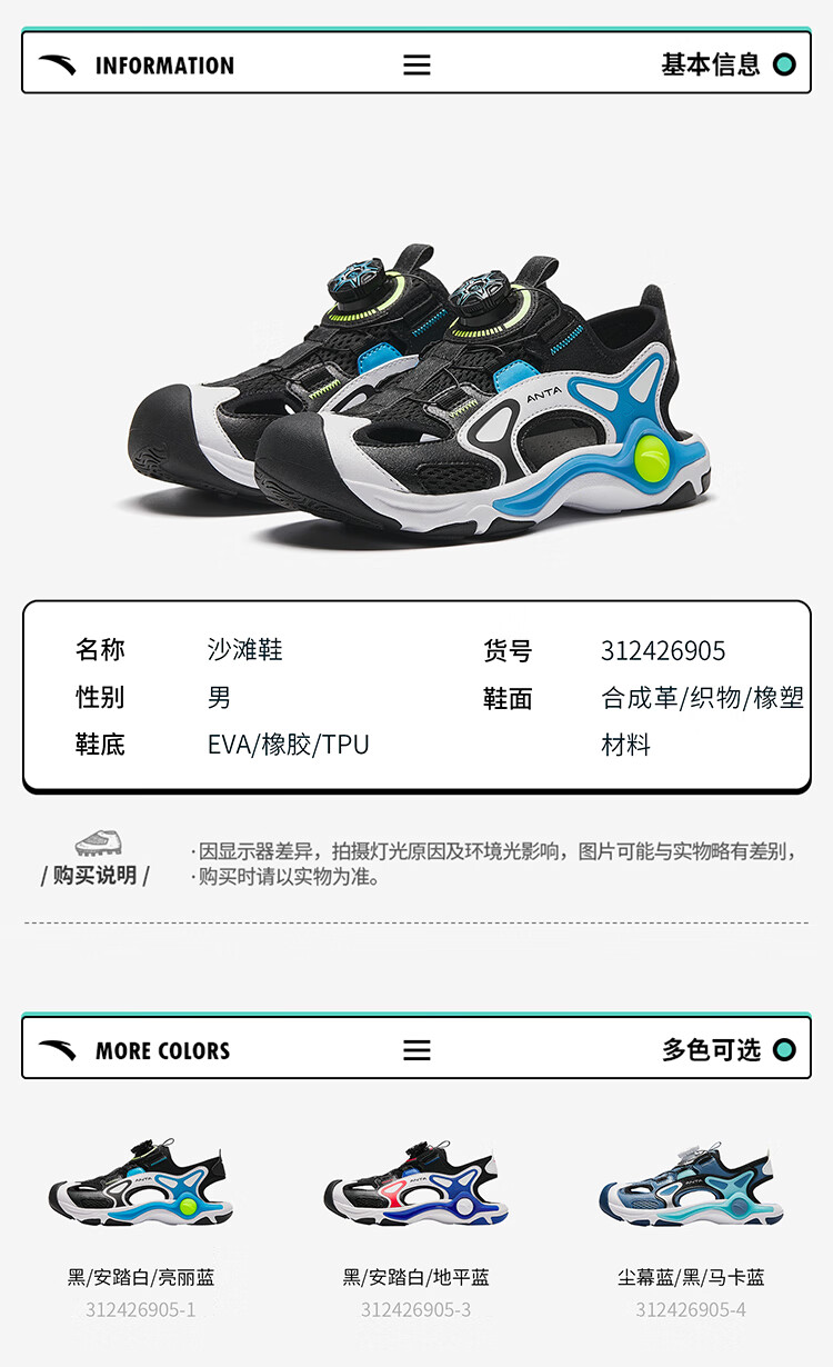 ANTA children's sports shoes for boys and girls 2025 summer breathable anti-slip toe-cap beach shoes 312426905H
