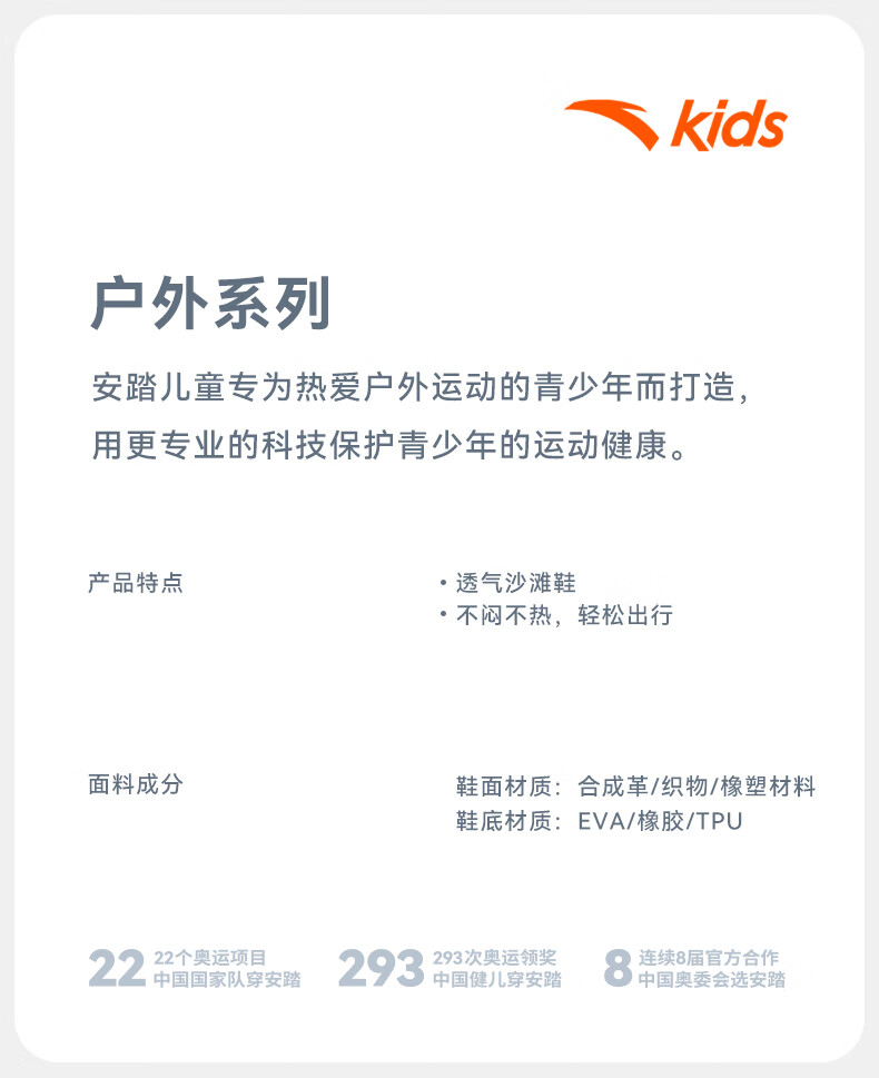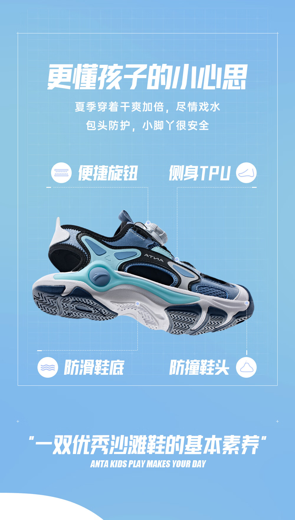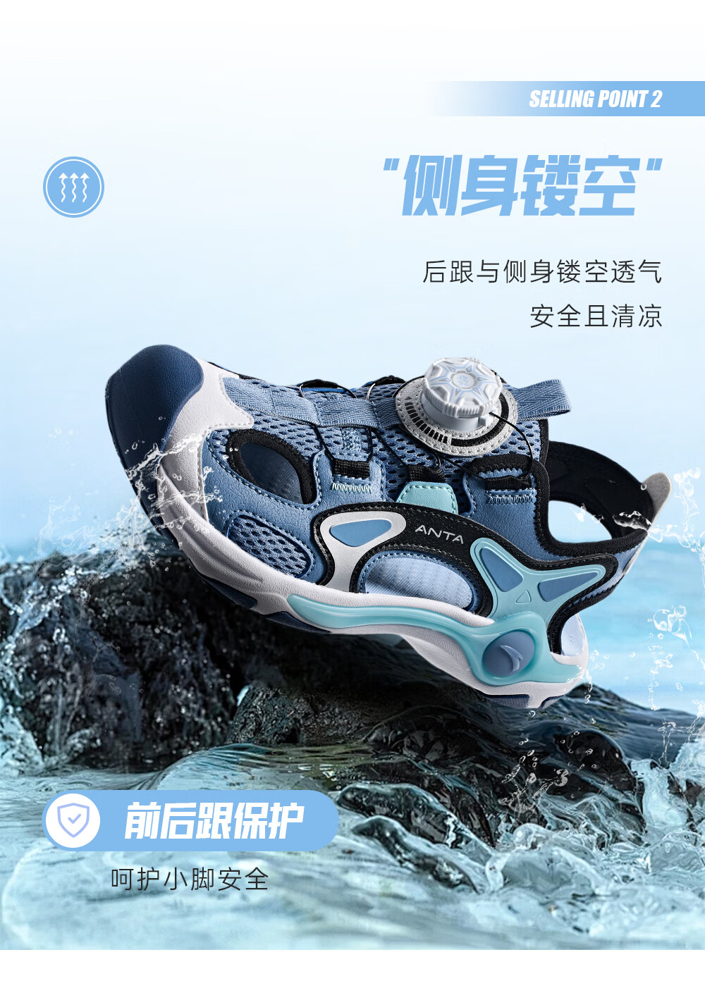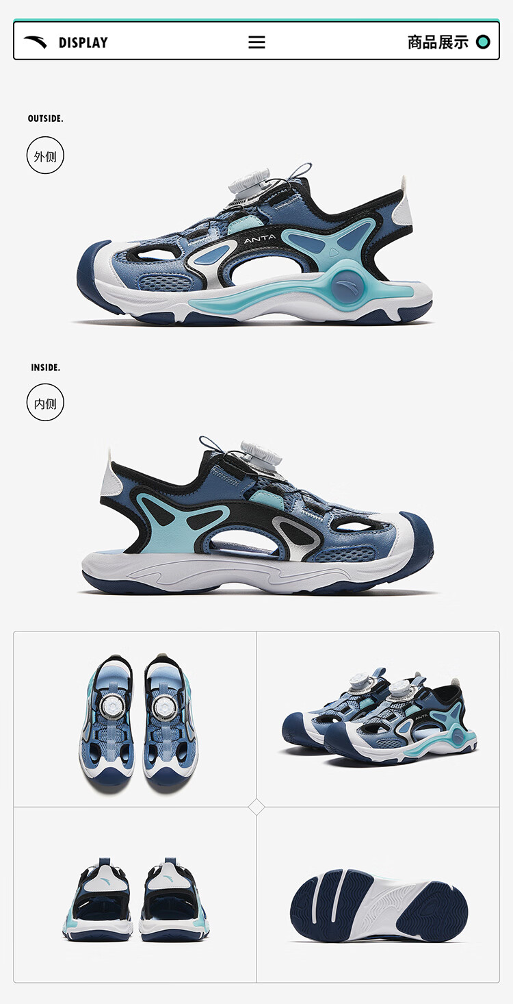 ANTA children's sports shoes for boys and girls 2025 summer breathable anti-slip toe-cap beach shoes 312426905H