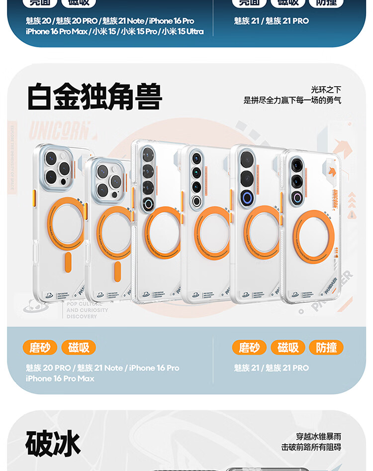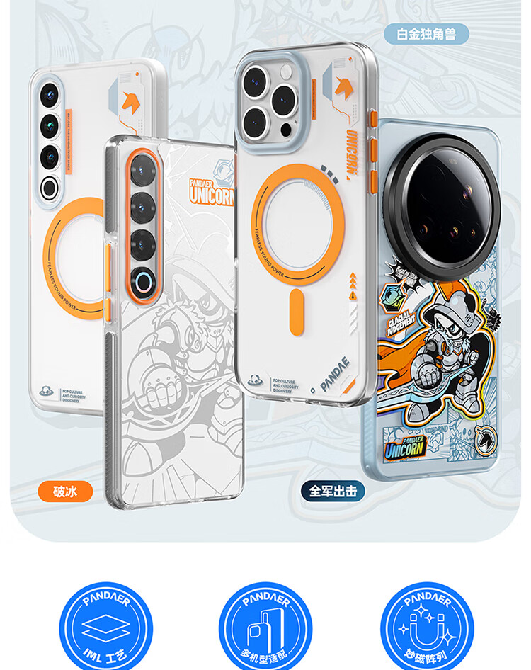 Meizu (MEIZU) PANDAER Platinum Unicorn Magic Mirror Phone Case Ice Breaking Suitable for iPhone 16 Pro Max IML Printing All-Inclusive Structure Click Button