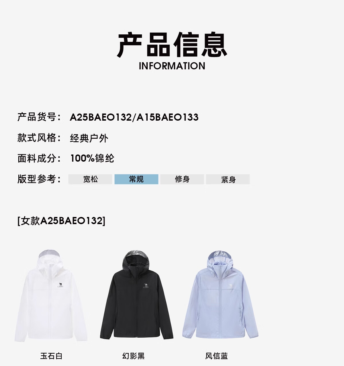 骆驼(CAMEL)女装防晒衣女轻薄皮肤衣透气宽松凉感速干防晒服 A25BAEO132 M