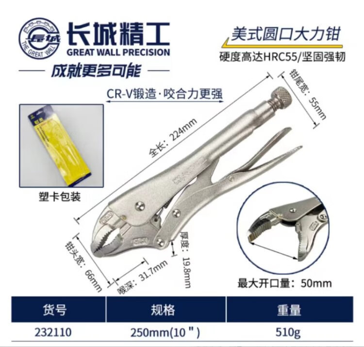Great Wall Seiko Round Mouth Power Pliers Multifunctional Fixed Pliers Woodworking Clamp Holding Tool 250mm (10) 232110