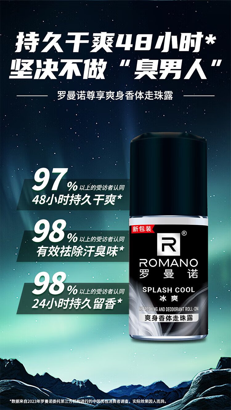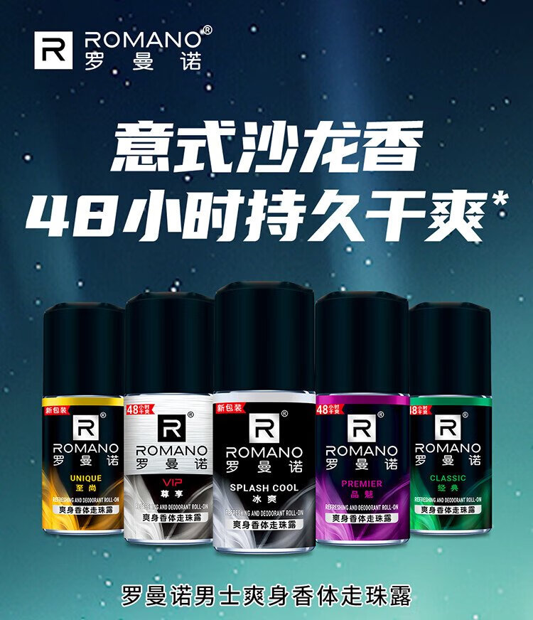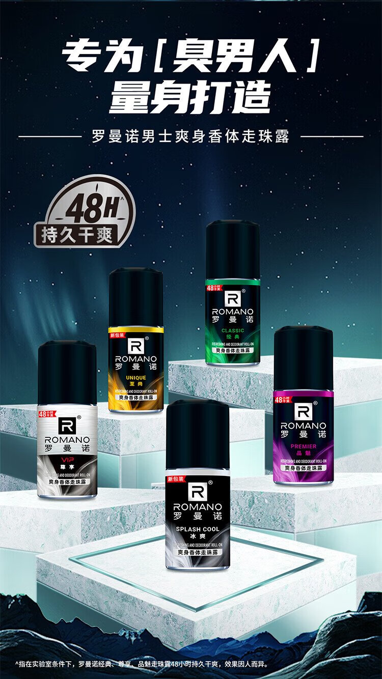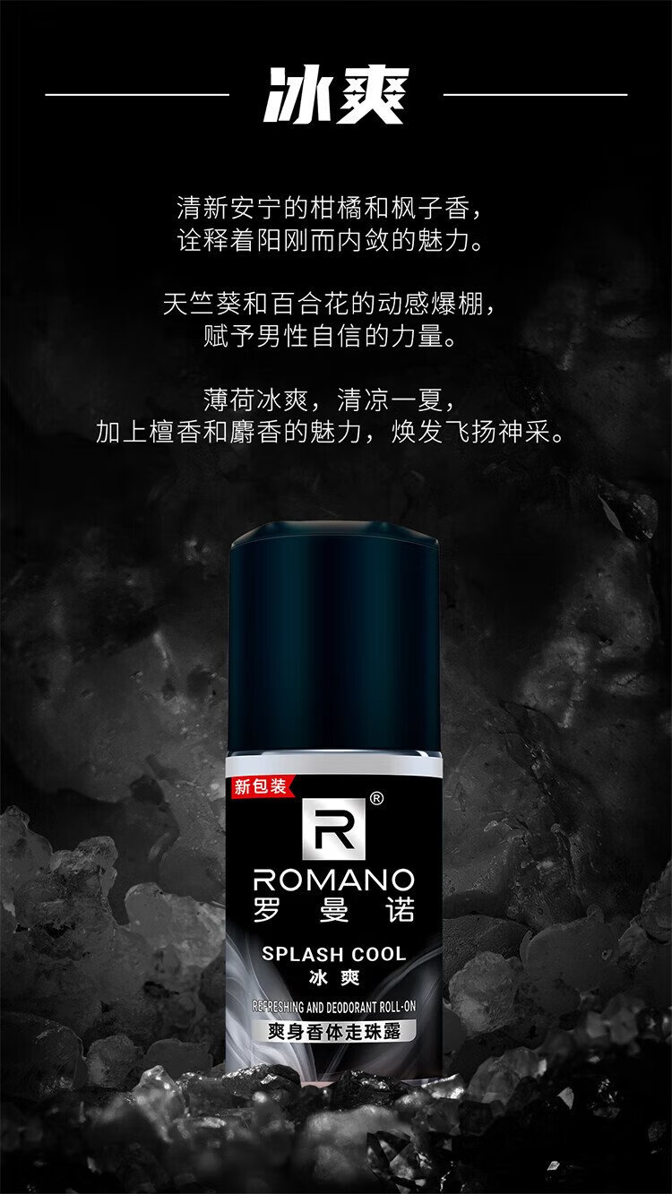 ROMANO men's roll-on antiperspirant, mint refreshing deodorant, underarm traceless deodorant roll-on 40ml
