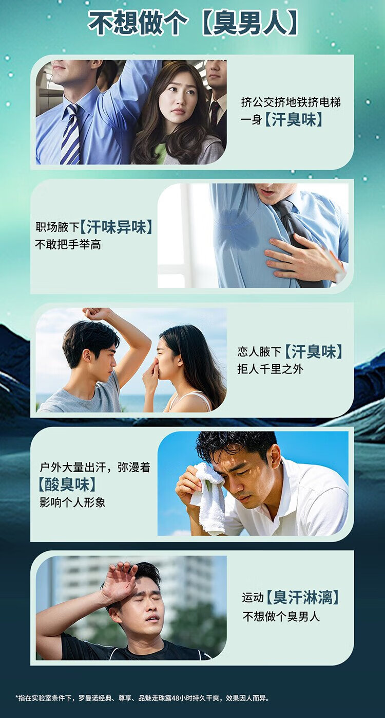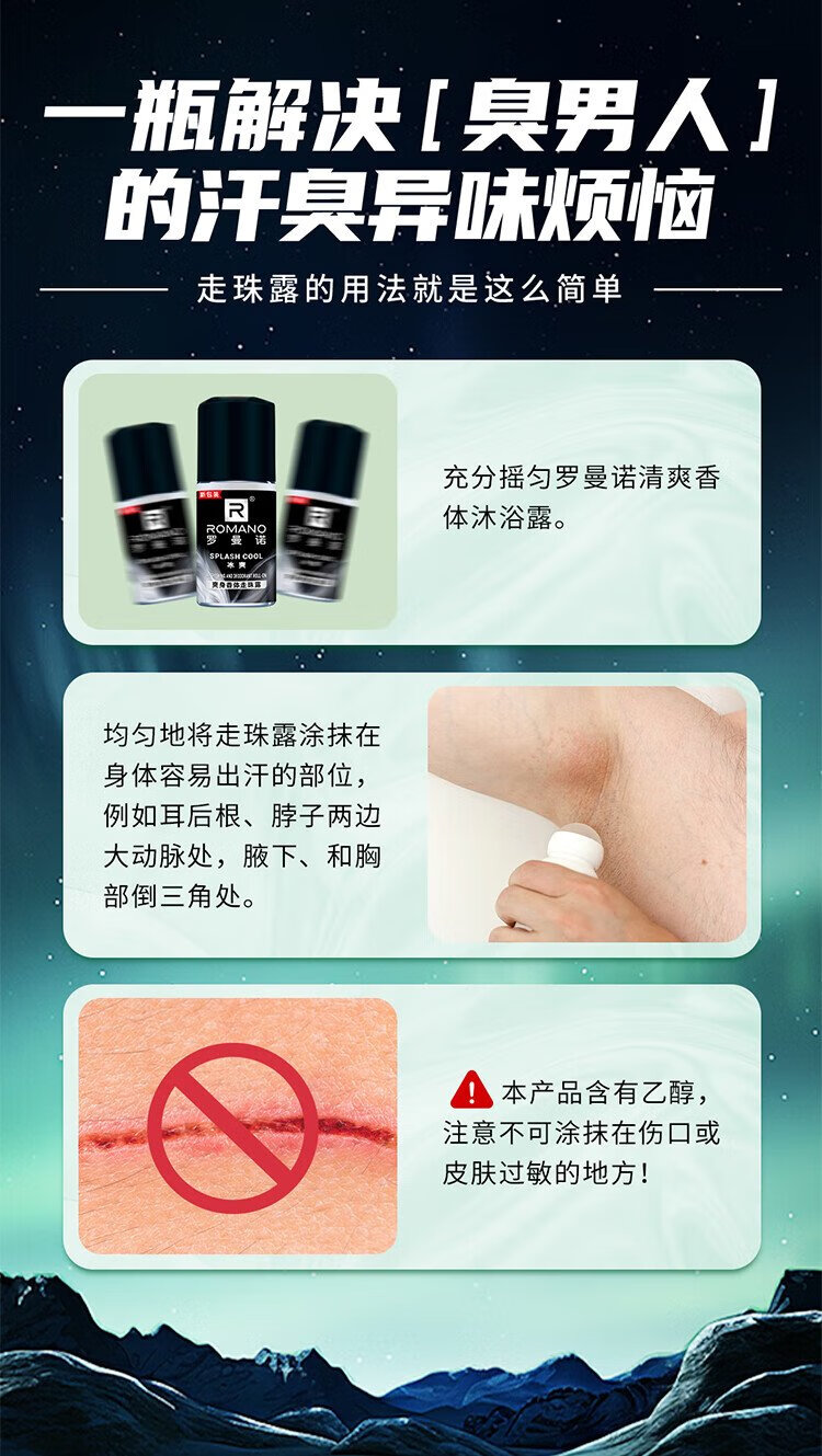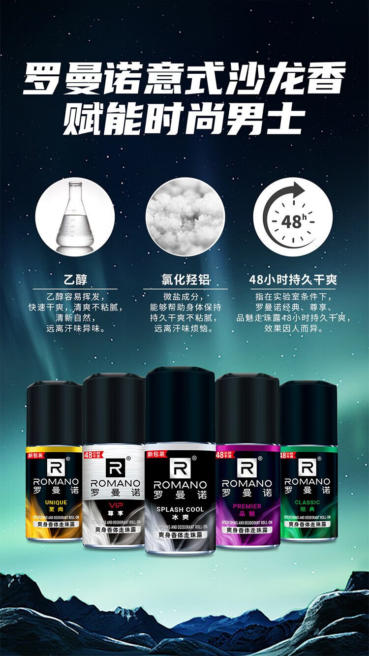 ROMANO men's roll-on antiperspirant, mint refreshing deodorant, underarm traceless deodorant roll-on 40ml