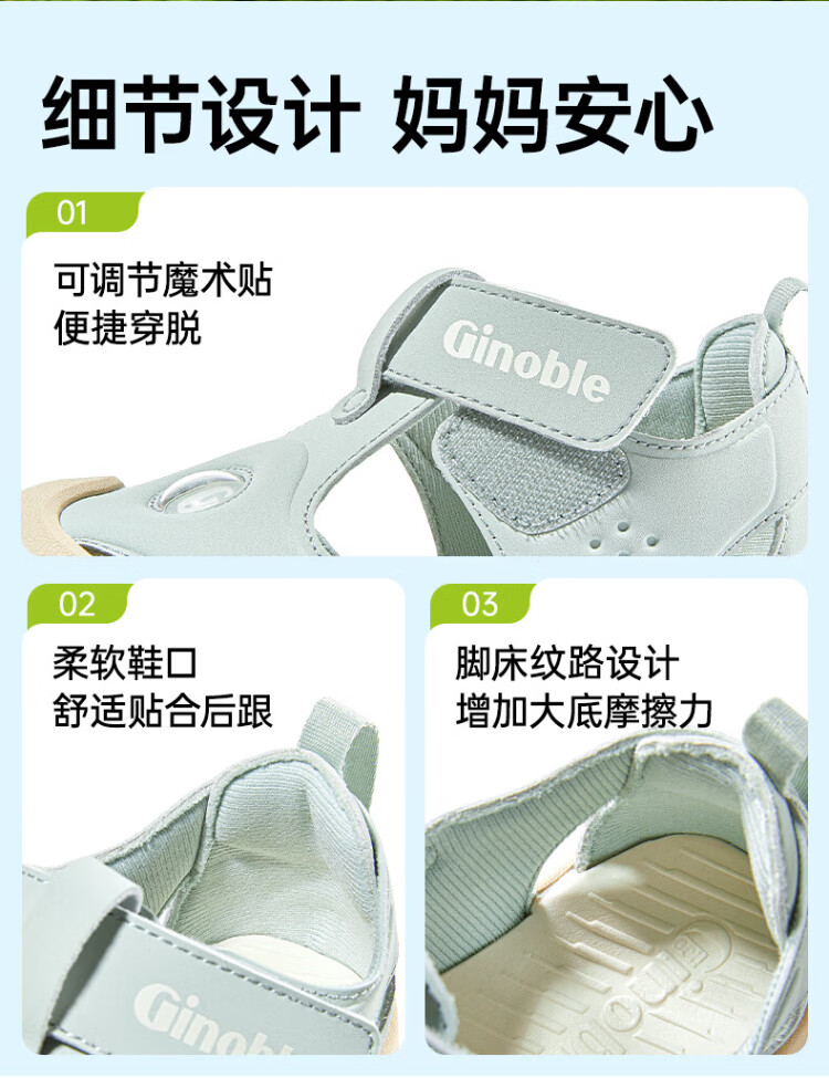 Ginoble Sandals Toddler Shoes 25 Years Summer Men's and Women's Children's Functional Shoes Summer Classic Series GW1756 Light Green