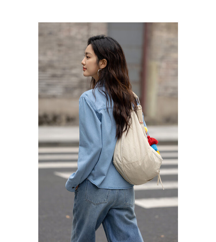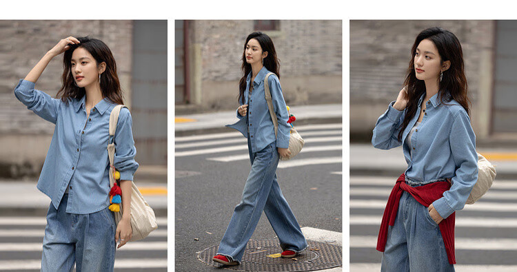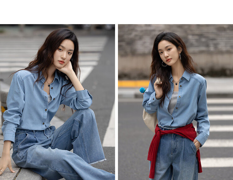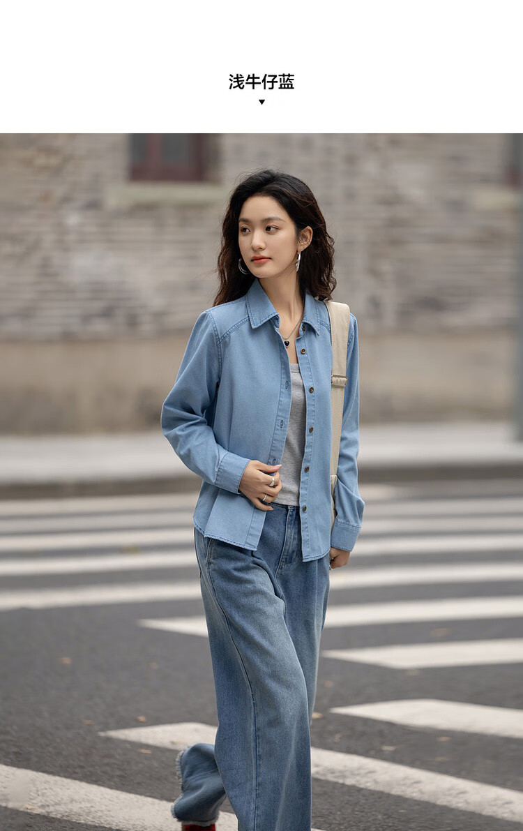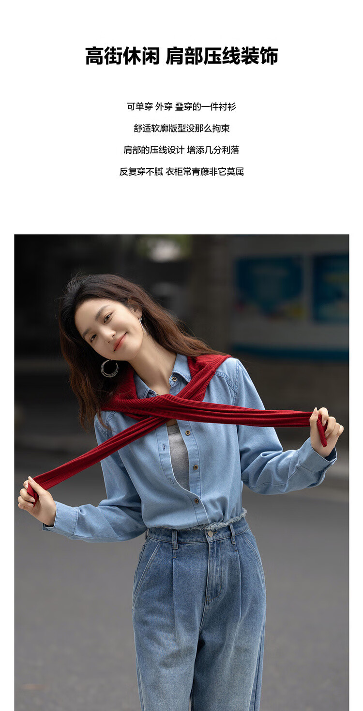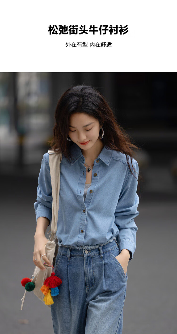 Demana intelligent denim spring simple lapel patchwork shirt comfortable hidden meat fashionable denim shirt women's top