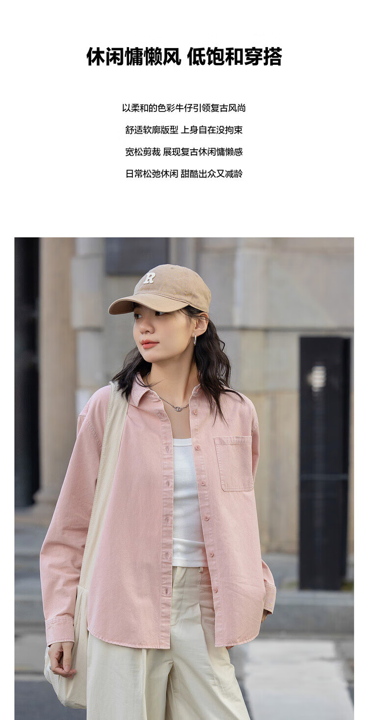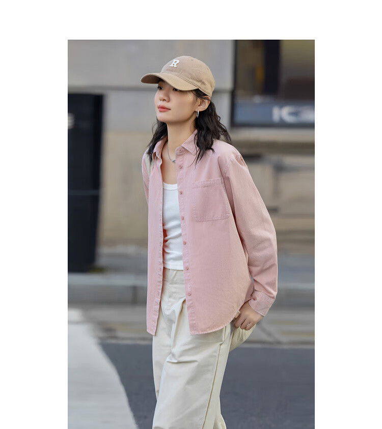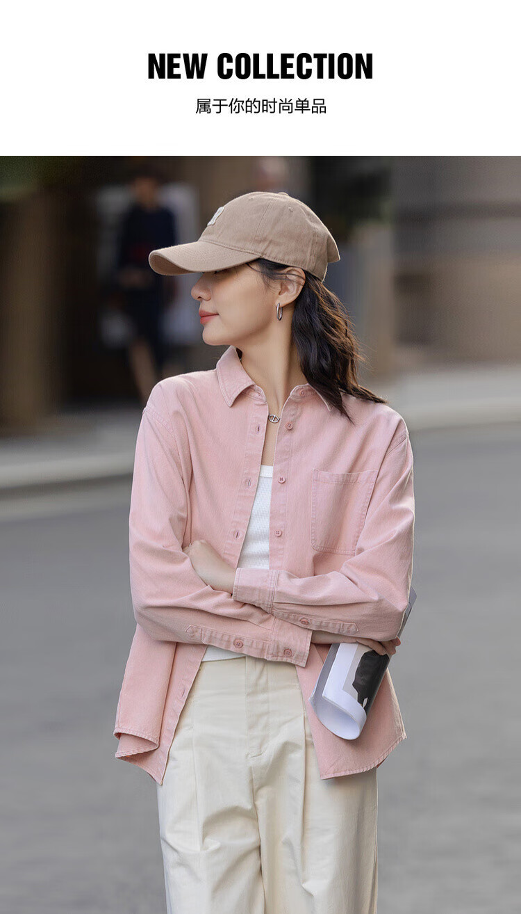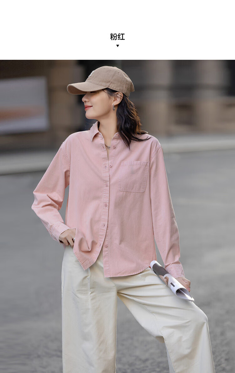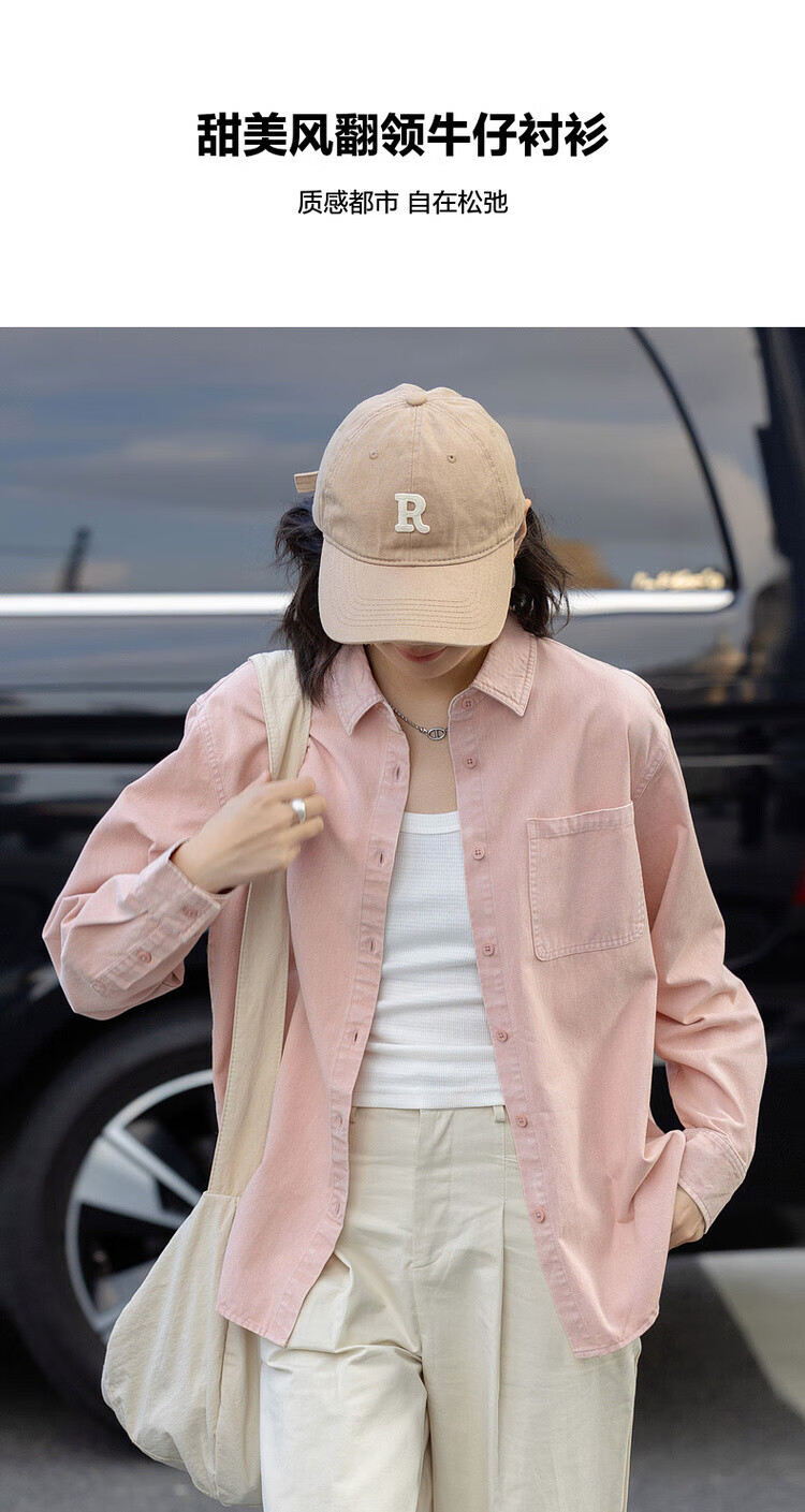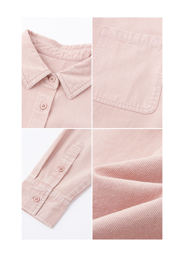 Demana dry rose spring youthful pure cotton lapel shirt loose and comfortable hidden meat denim shirt women's top