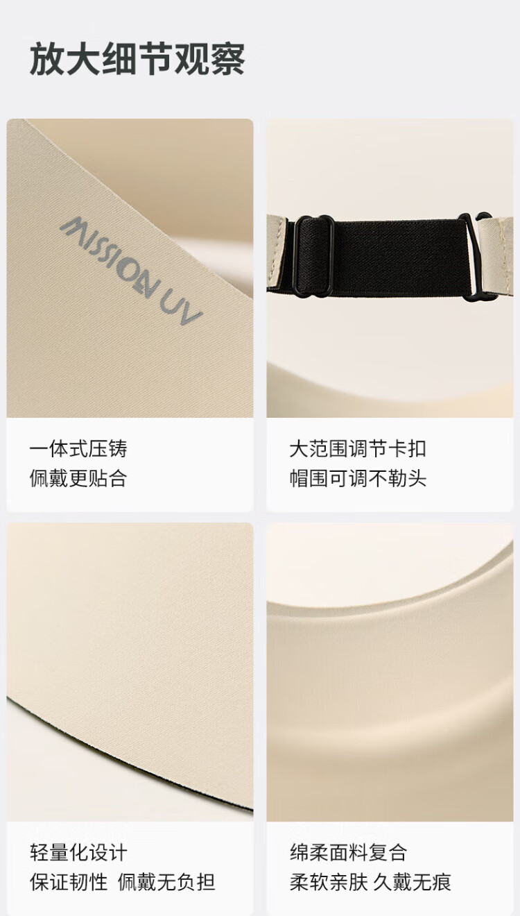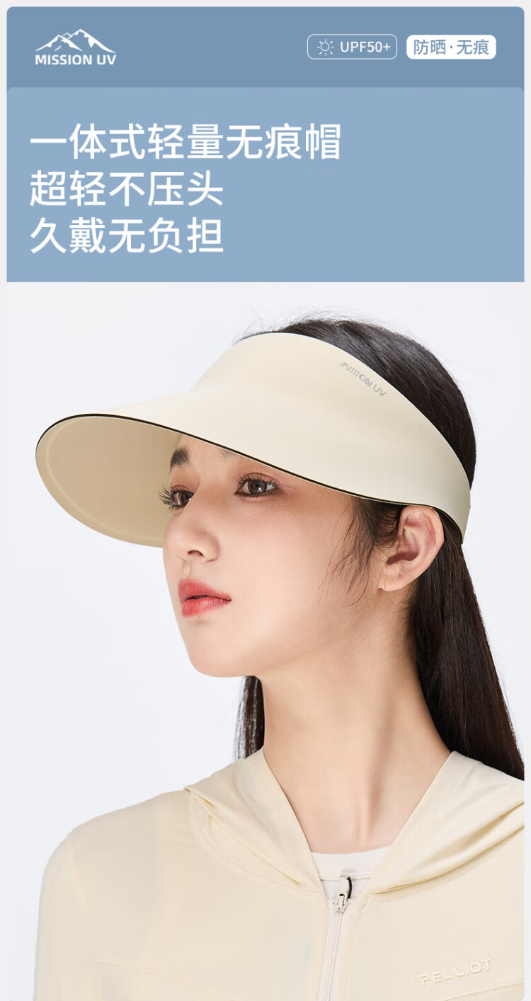 MISSION UV sun protection hat women's sun hat sun hat empty top hat summer sports running anti-UV seamless one-piece hat for women