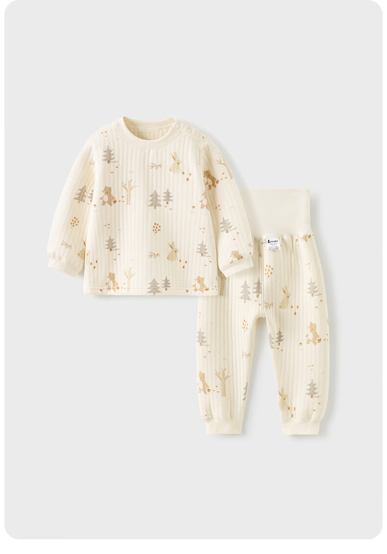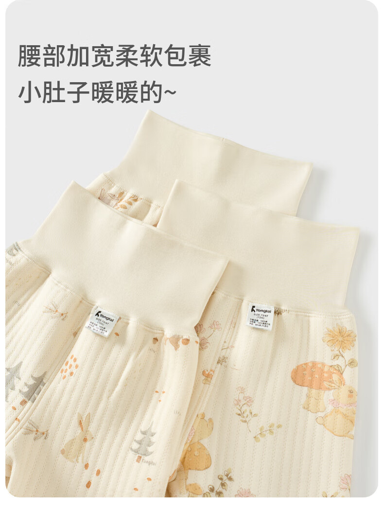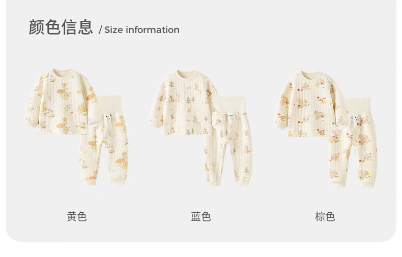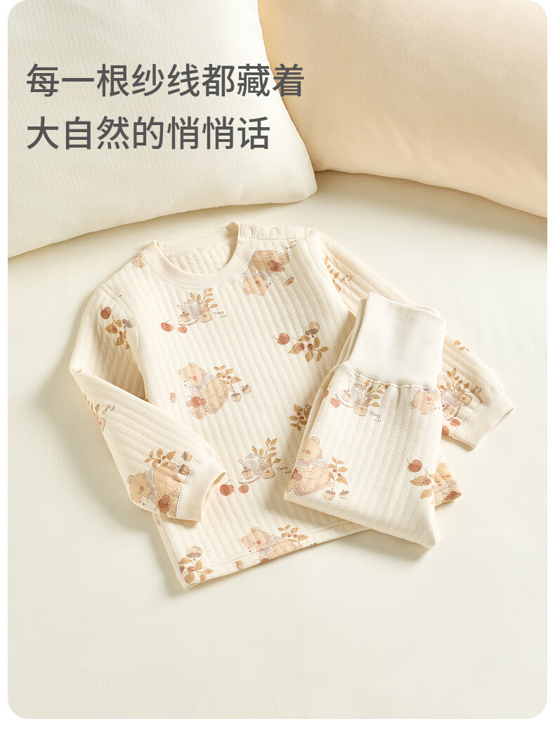 TONGTAI baby set autumn and winter pure cotton warm children's underwear high waist long johns pajamas home clothes brown 100cm
