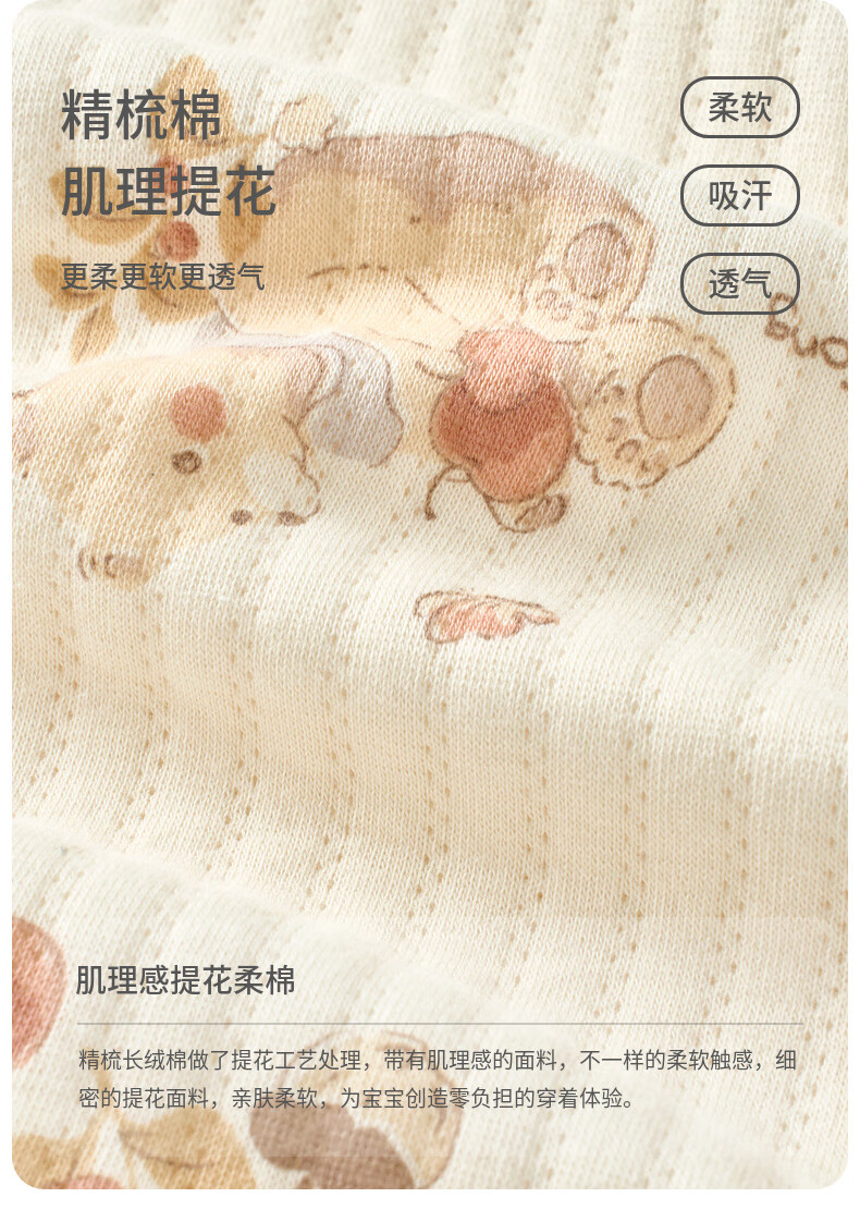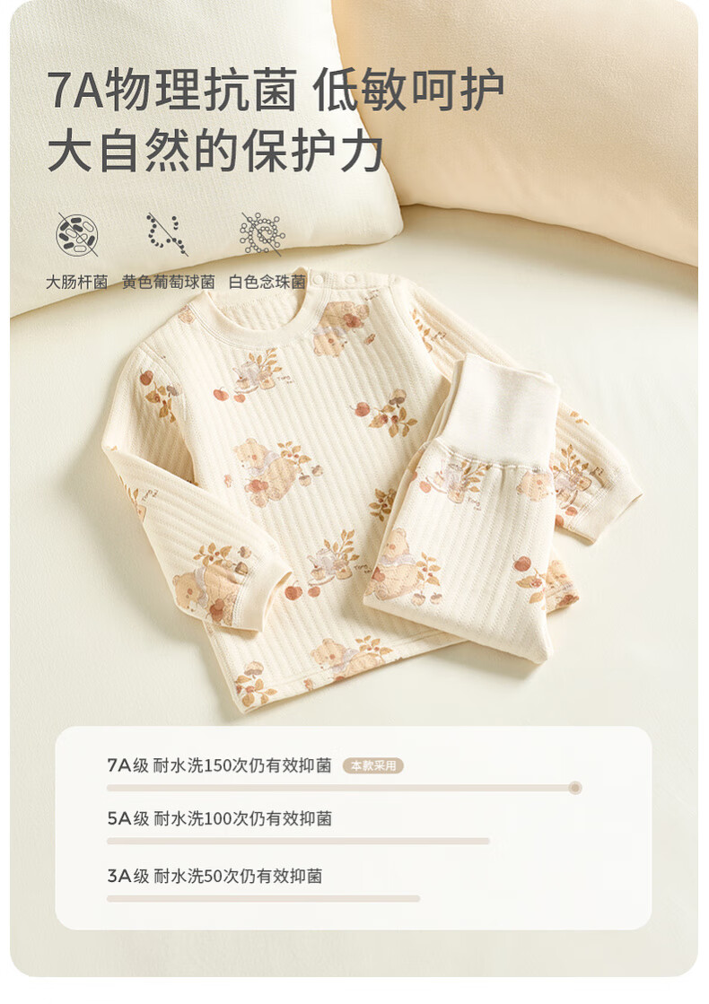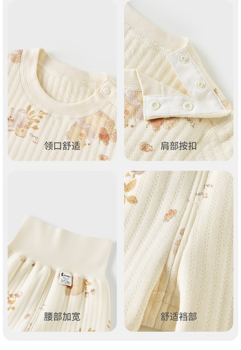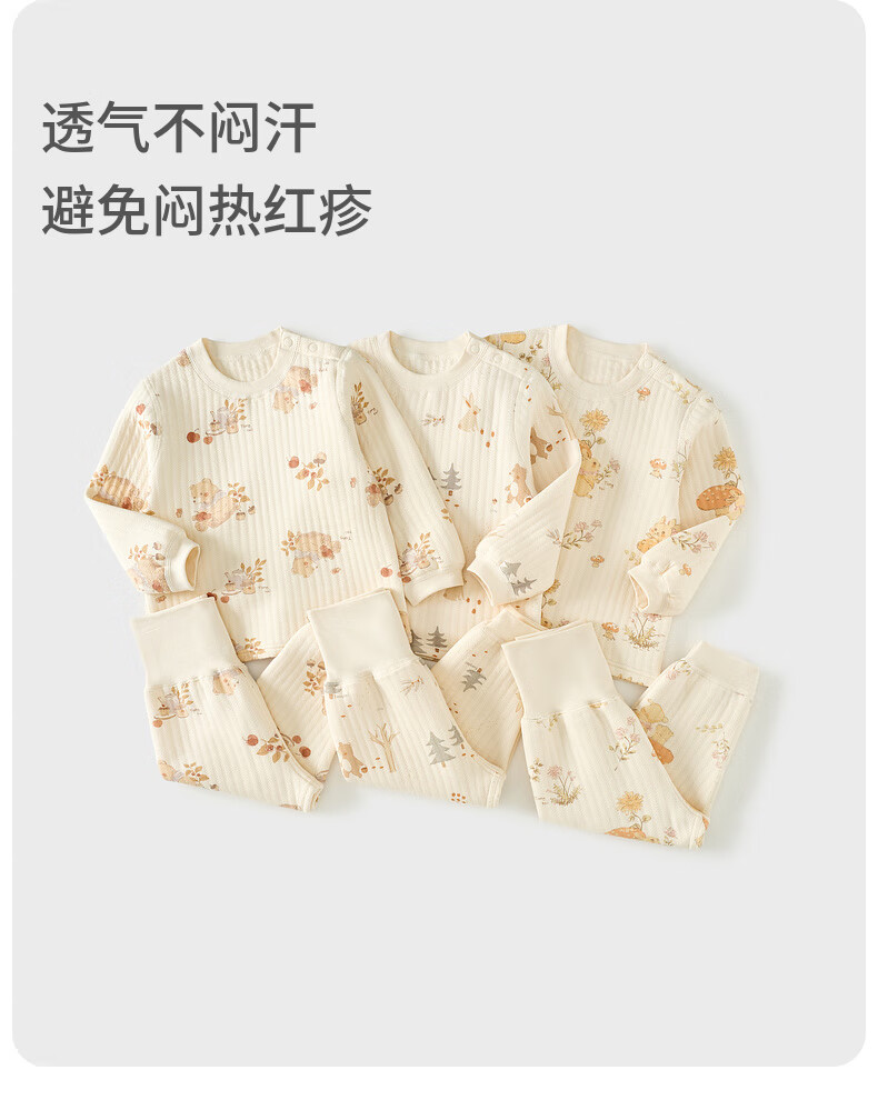 TONGTAI baby set autumn and winter pure cotton warm children's underwear high waist long johns pajamas home clothes brown 100cm