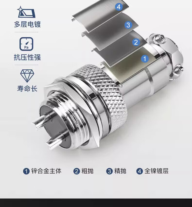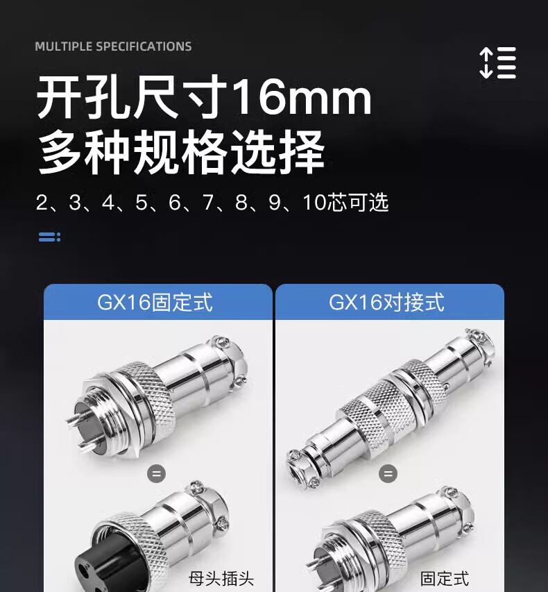 Huijun GX16 aviation plug socket wire connector fixed butt type welding opening 16mm GX16 butt type-4 core