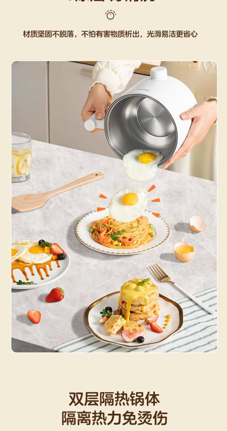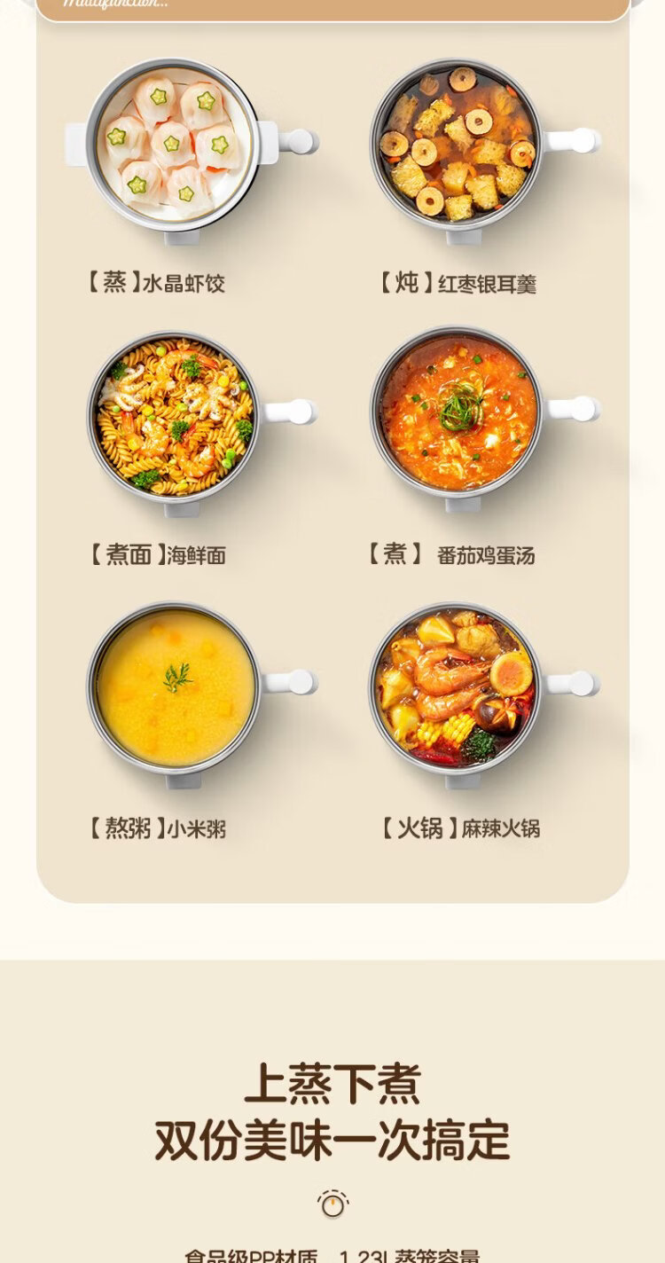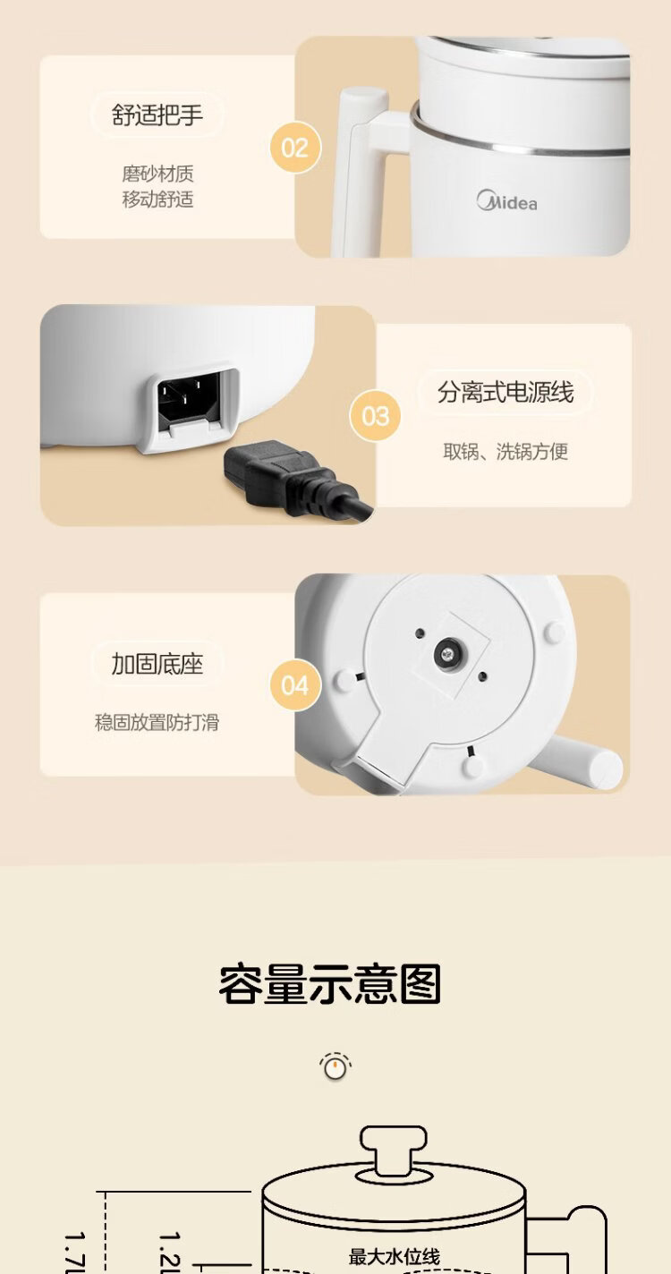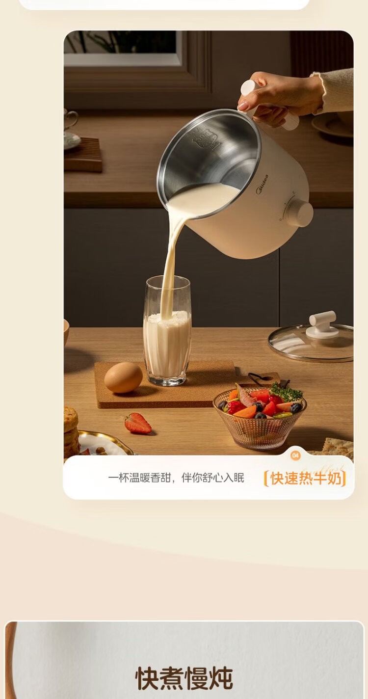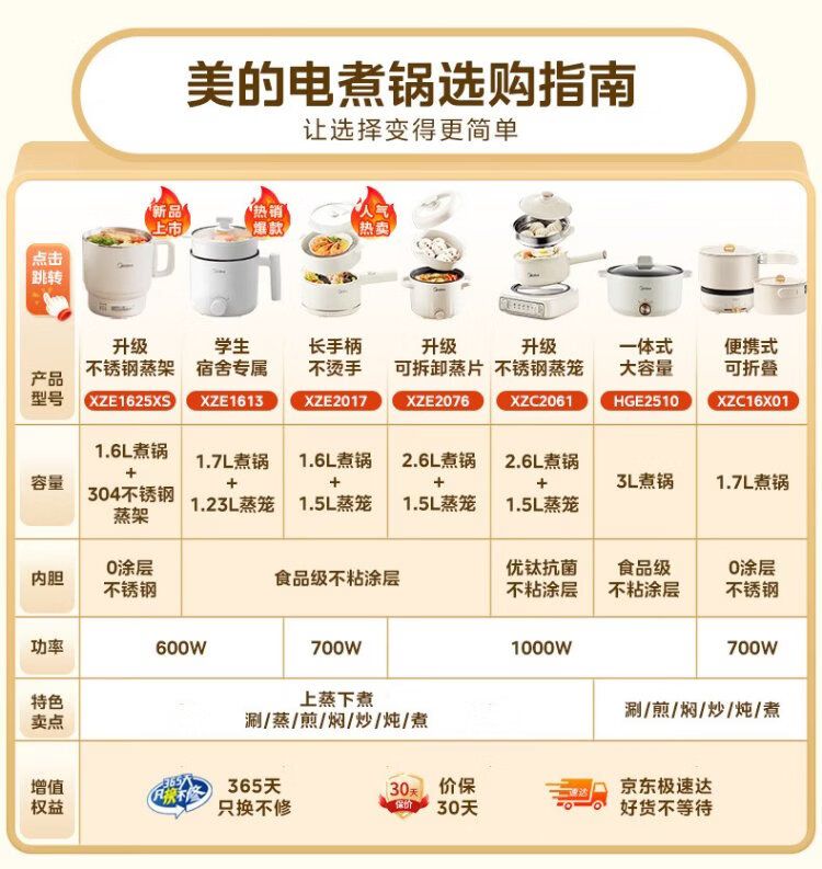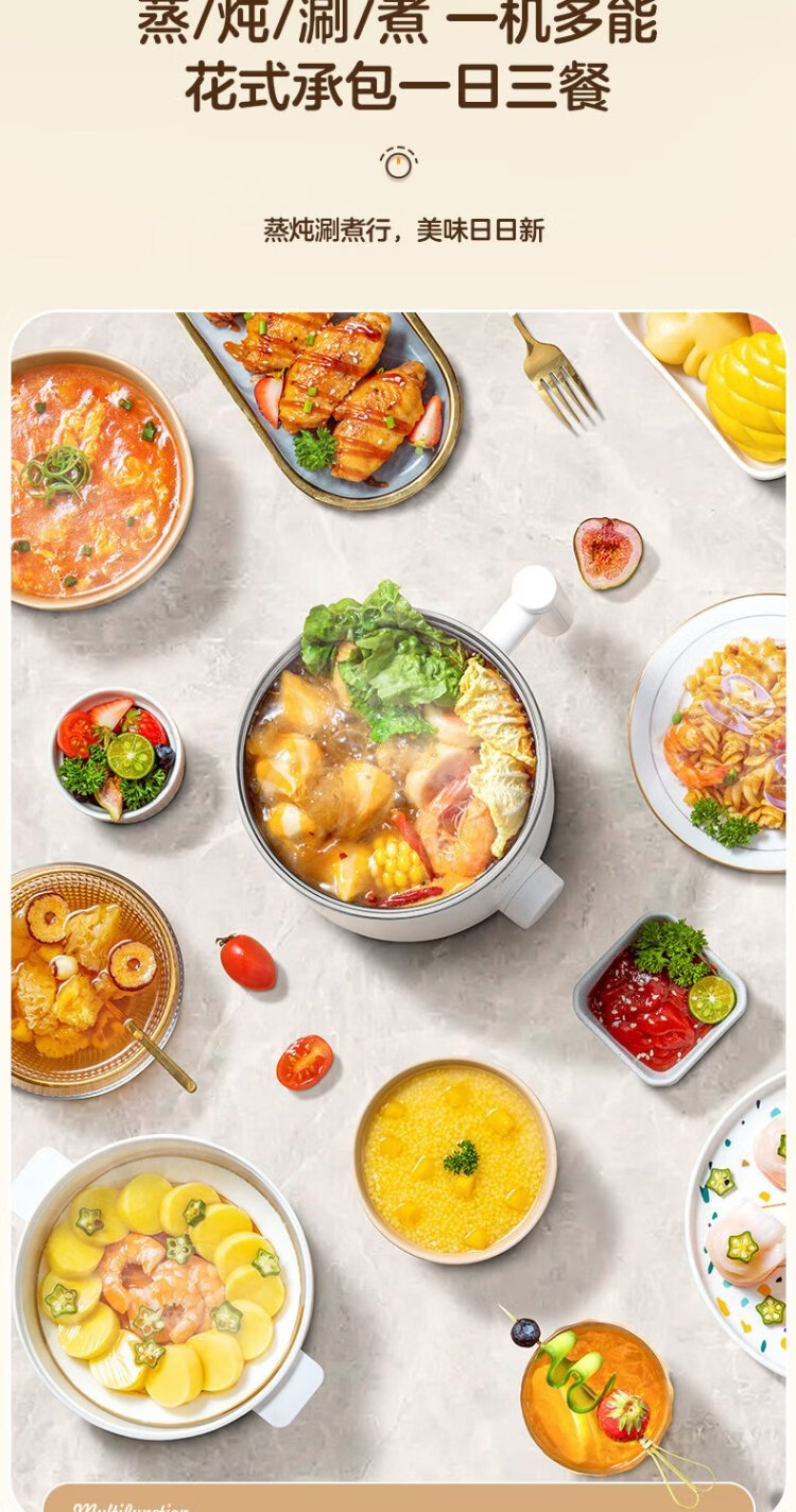 Midea electric cooker dormitory small pot small electric pot student dormitory all-in-one instant noodle hot pot multi-function stainless steel 0 coating electric steamer electric hot pot XZE1614 with steamer
