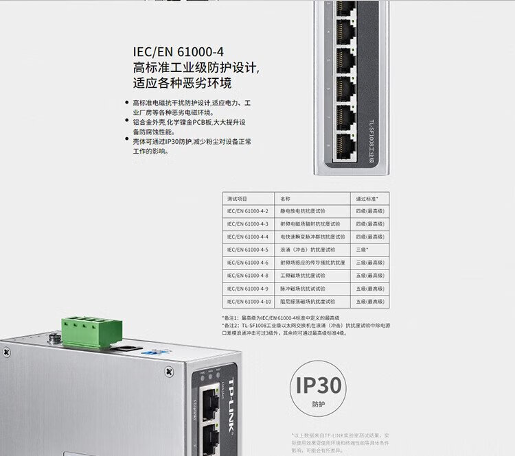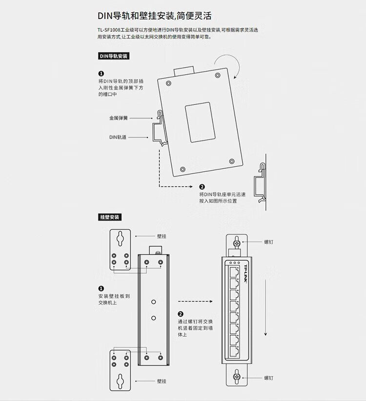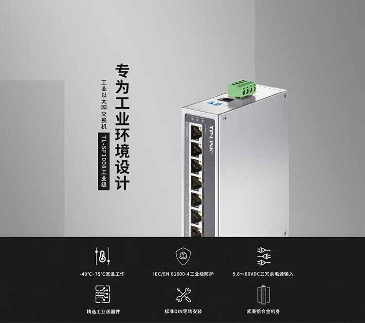 TP-LINK industrial switch, wide temperature operation, DIN rail, three-way redundant power supply, TL-SF1008 industrial grade, 8-port 100Mbps