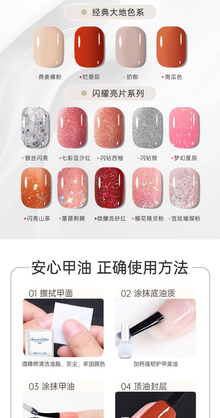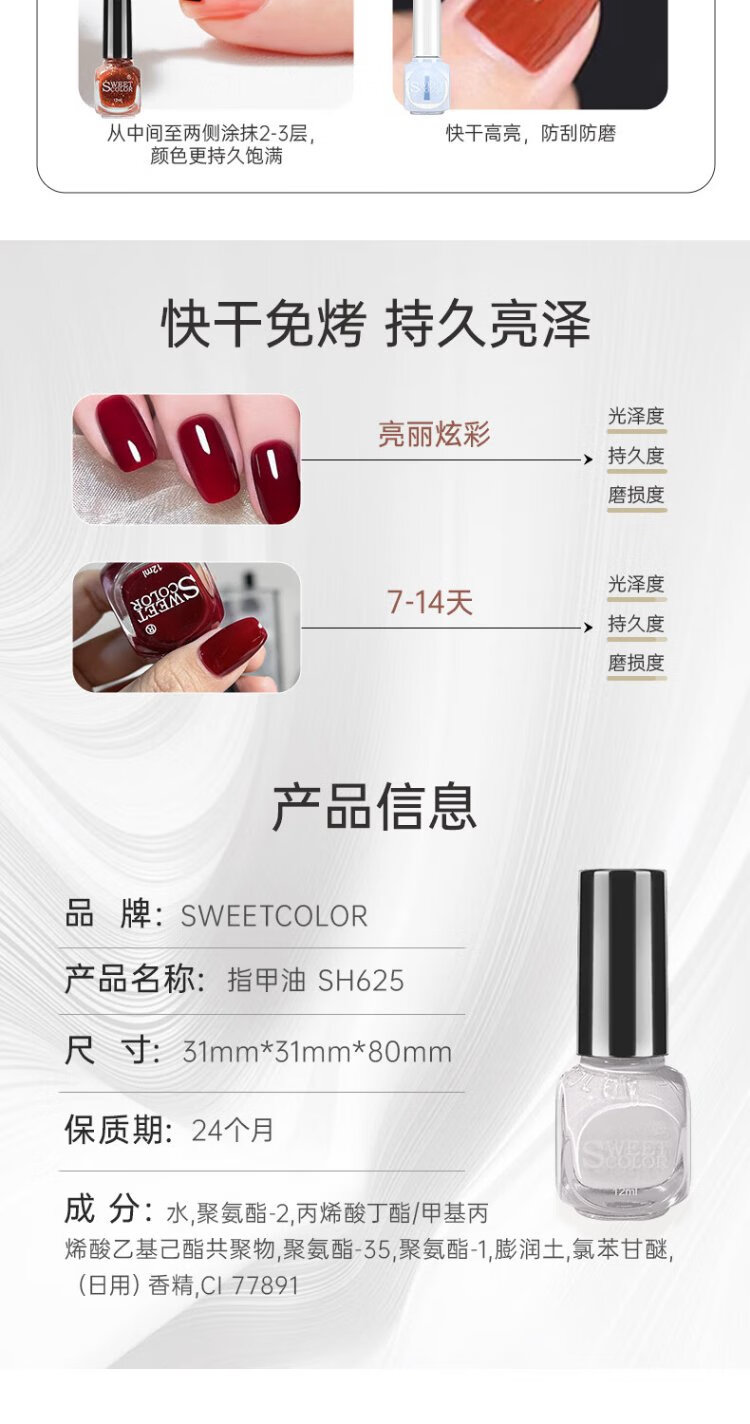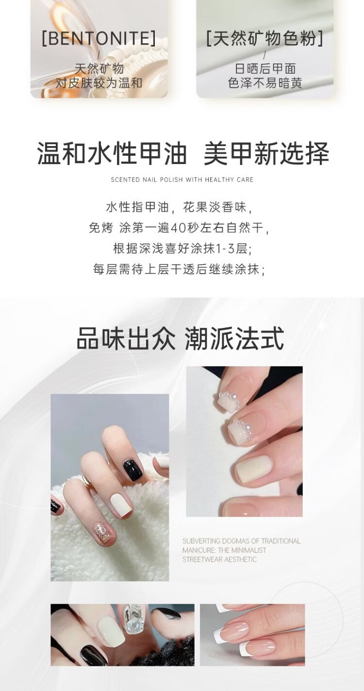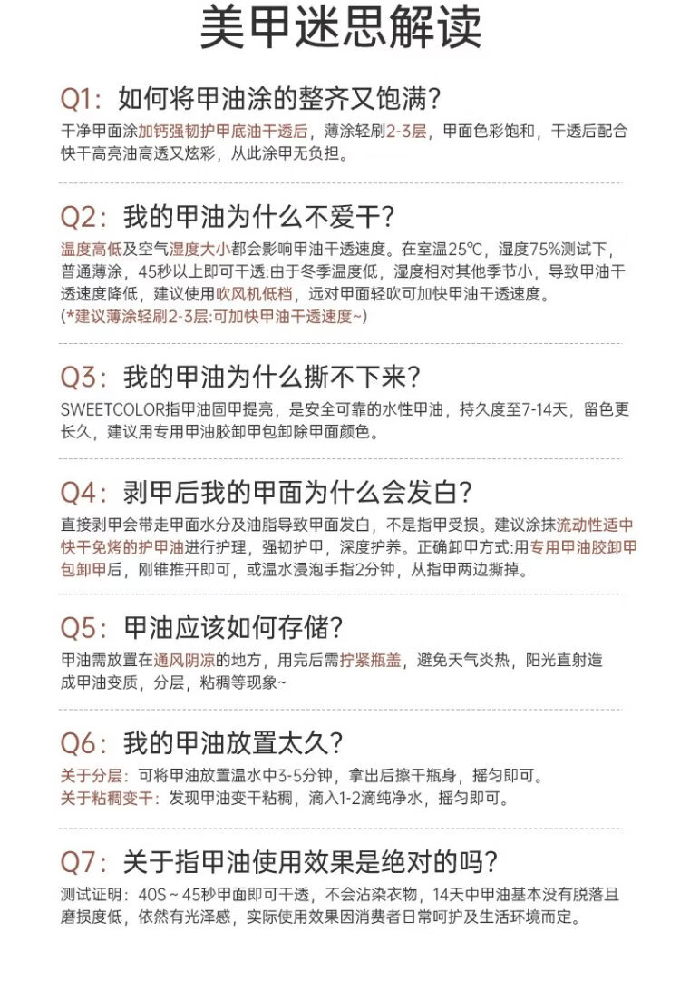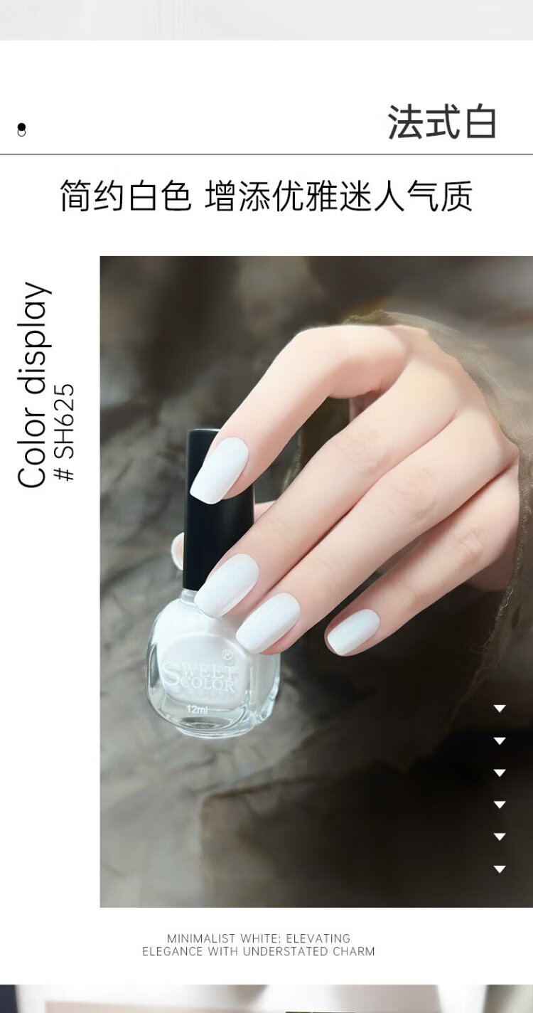 Sweet Color指甲油水性指甲油新款免烤快干白色系无毒12ml新年礼物送女生